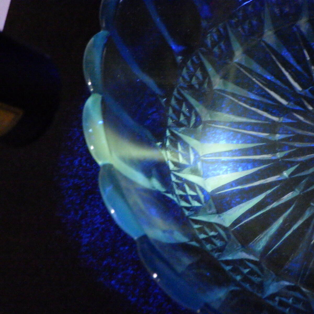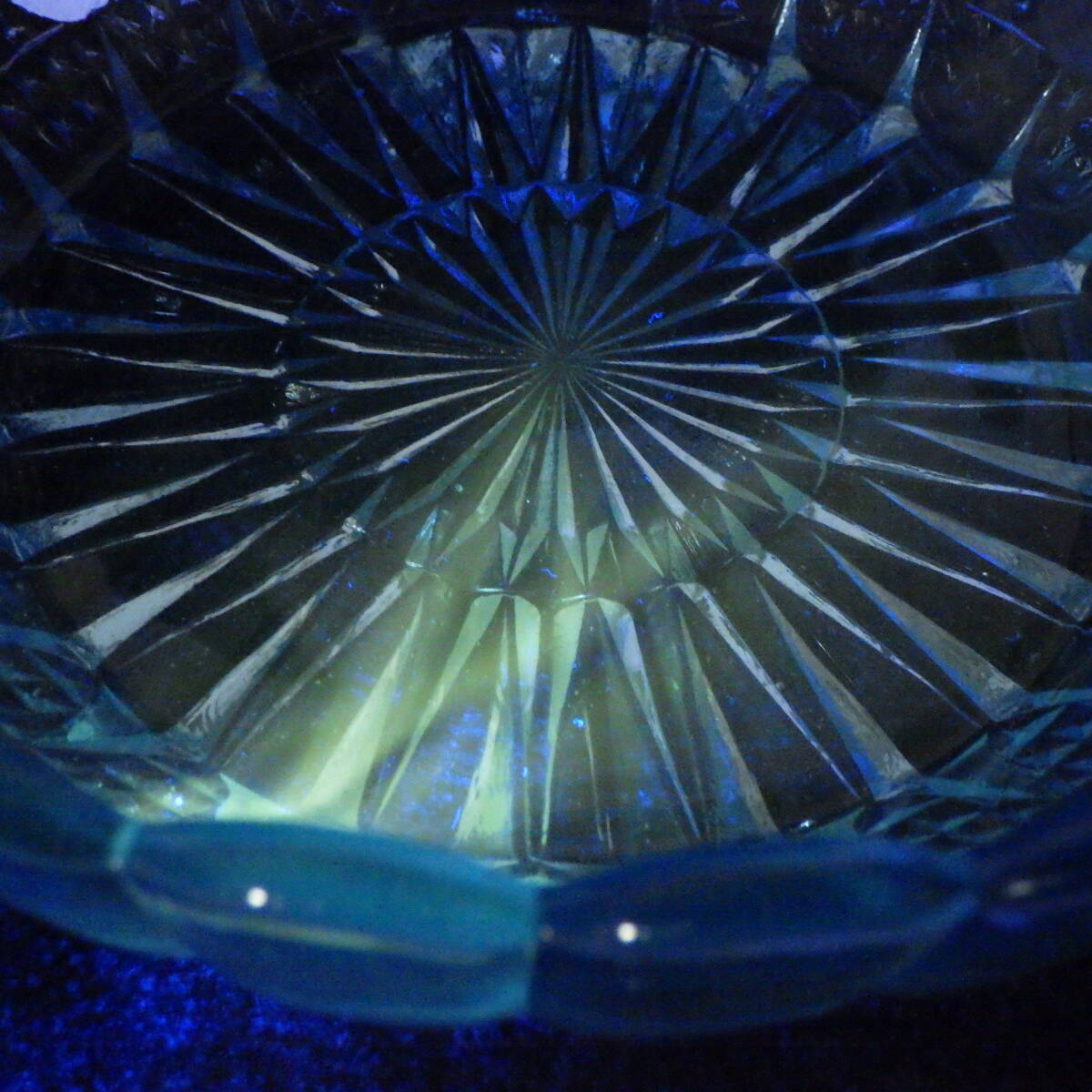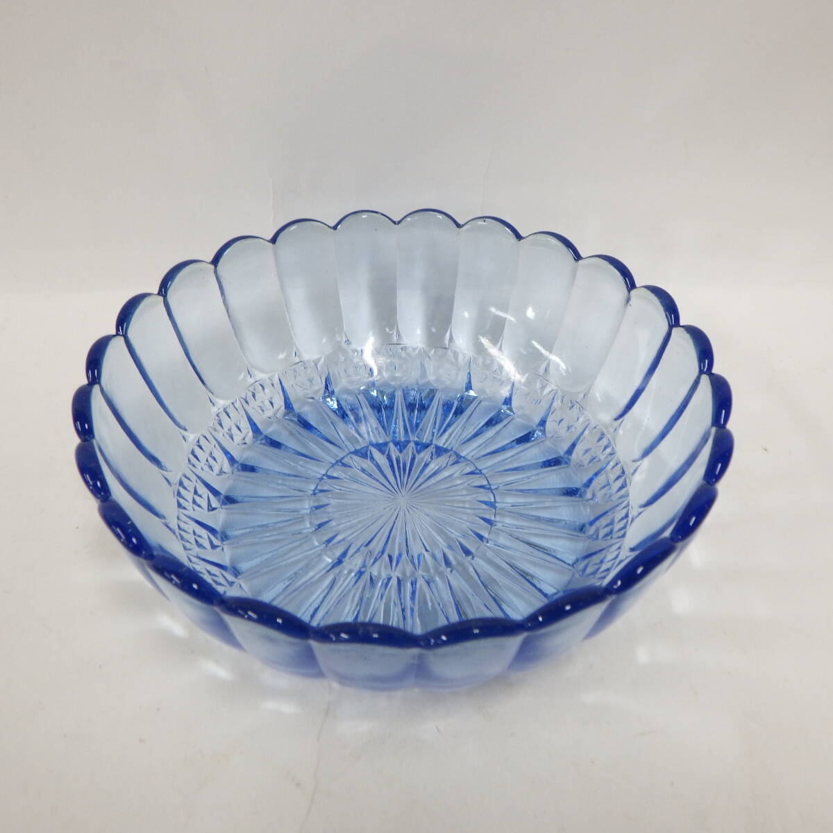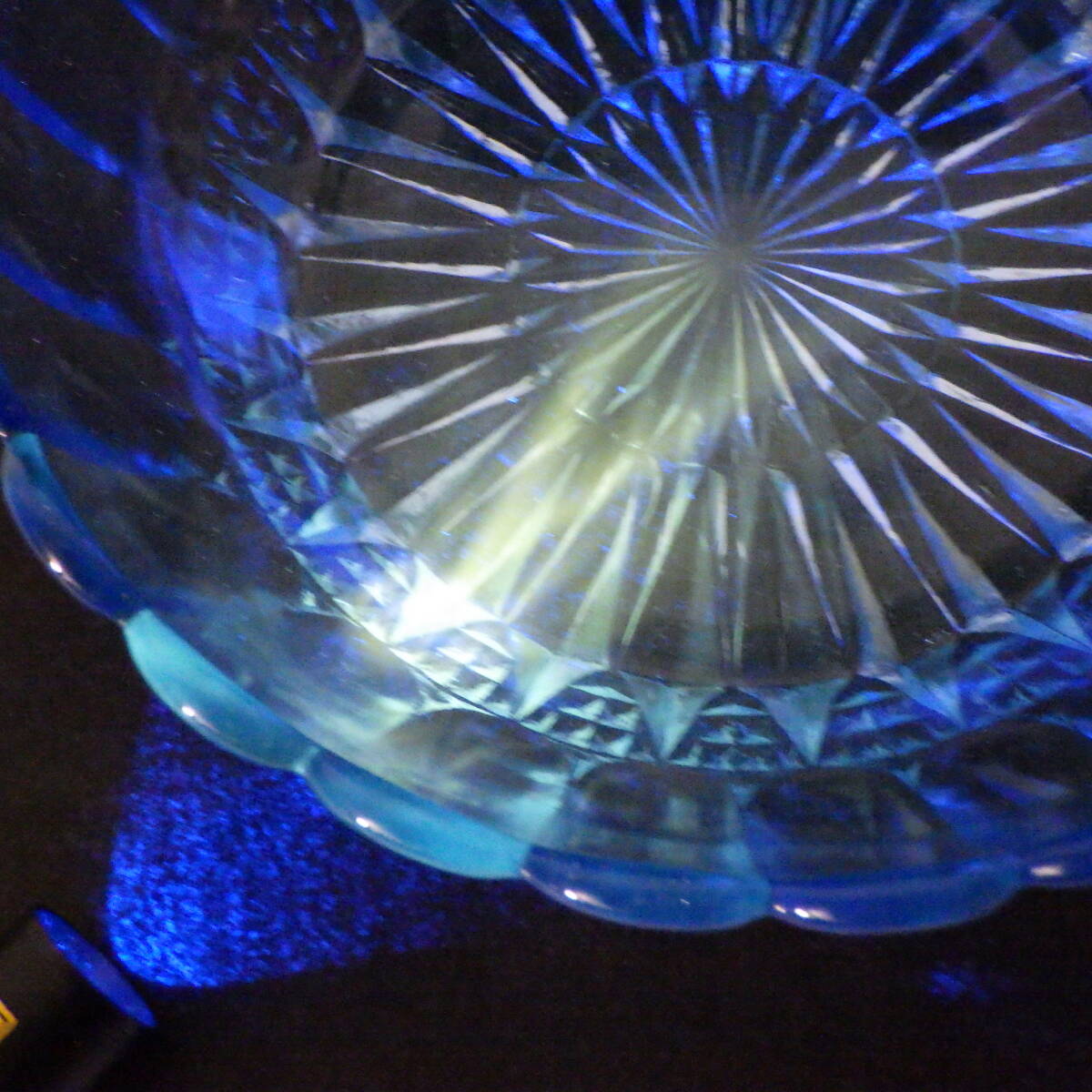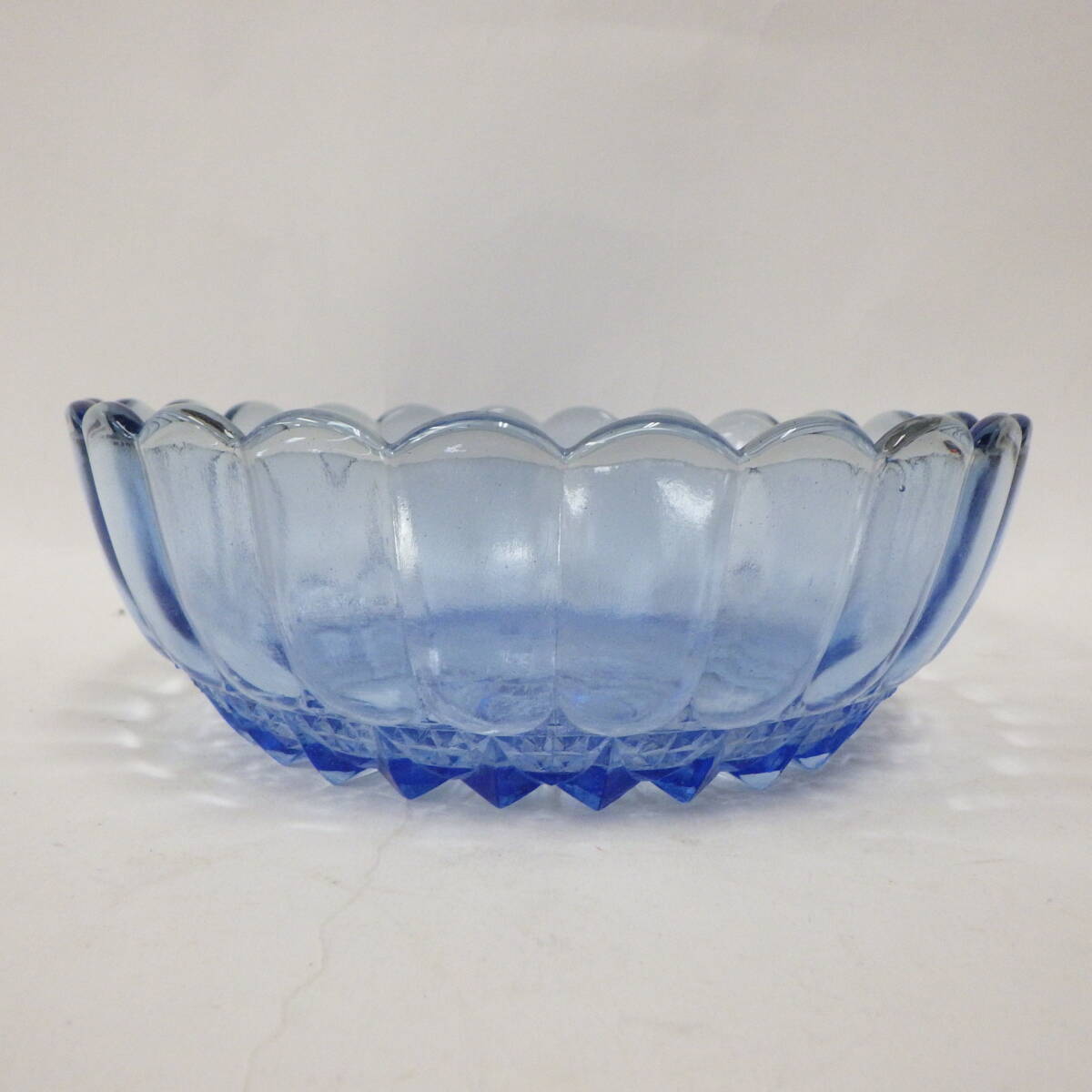 大正 昭和 レトロ ガラス 皿 プレスガラス 青 ブルー 気泡 ボウル
