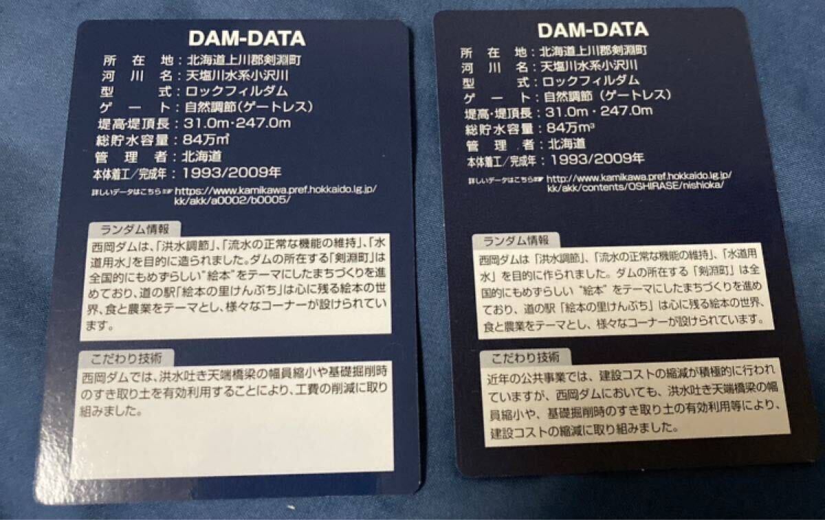 ・北海道 ダムカード 西岡ダム(新旧)2枚セットです!