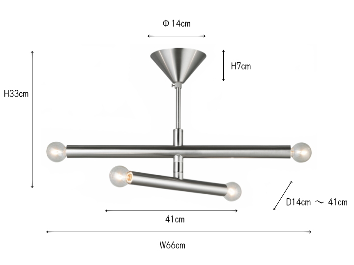 4灯 シーリングライト (電球別売り) 長短2本の円柱の交錯による洗練されたミニマルデザインが魅力のシーリングライト。 ワントーンシルバーでモダンな印象です。 可動式アームを採用し、好みに合わせてシルエットを変えられる仕様にしています。 アームを平行に設置したり交差させたりと自由自在です。 【サイズ・素材など】 ■幅660×奥行140~410×高さ330mm ■スチール ■重量:1.4kg ■取り付け:引っ掛けシーリング ■口金サイズ:E17 ■対応電球:E17/60W Φ50ボール球(LED球使用可能) 【送料・その他】 ■送料無料(沖縄、離島は別途見積り) ■発送まで2.3営業日を頂いております。(土日祝は休業日です) 【その他・必ずご確認下さい。】 *お支払いいただく金額は落札金額+配送料金となります。 *商品の直接取引・送料着払いには対応しておりませんのでご了承ください。 *初期不良や運搬中の破損などは交換対応となります。 *商品が到着しましたら、不良、破損がないかご確認ください。 万一破損等ございましたら、3日以内にご連絡ください。お時間がたちますと、交換等できない場合がございます。 *当店の商品はすべて新品商品です。 *土日祝は休業の為、発送やご連絡ができません。 よろしくお願いします。 |