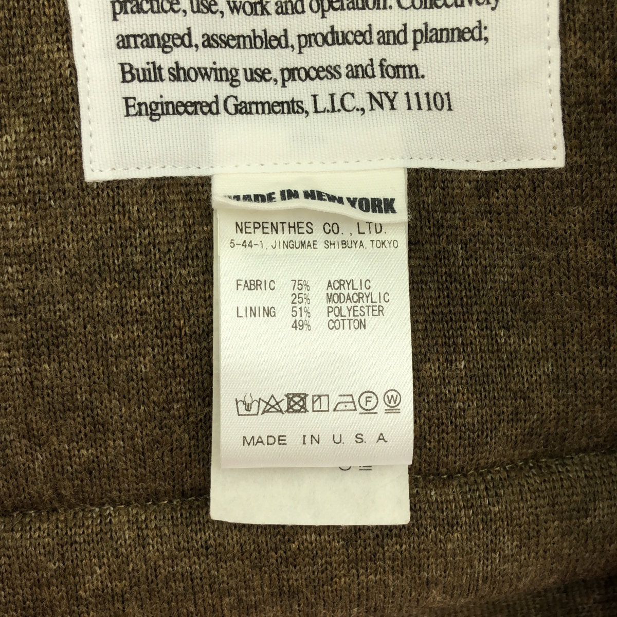 | 仕様 | ブランド名:Engineered Garments エンジニアードガーメンツ 色:ブラウン 素材:アクリル モダクリル ポリエステル コットン 生産国:アメリカ サイズ:S ※付属品については特記なき限り画像にあるものが全てとなります ※画像のカラーのイメージとお客様のイメージがお使いのモニターや環境により異なる場合がございます |