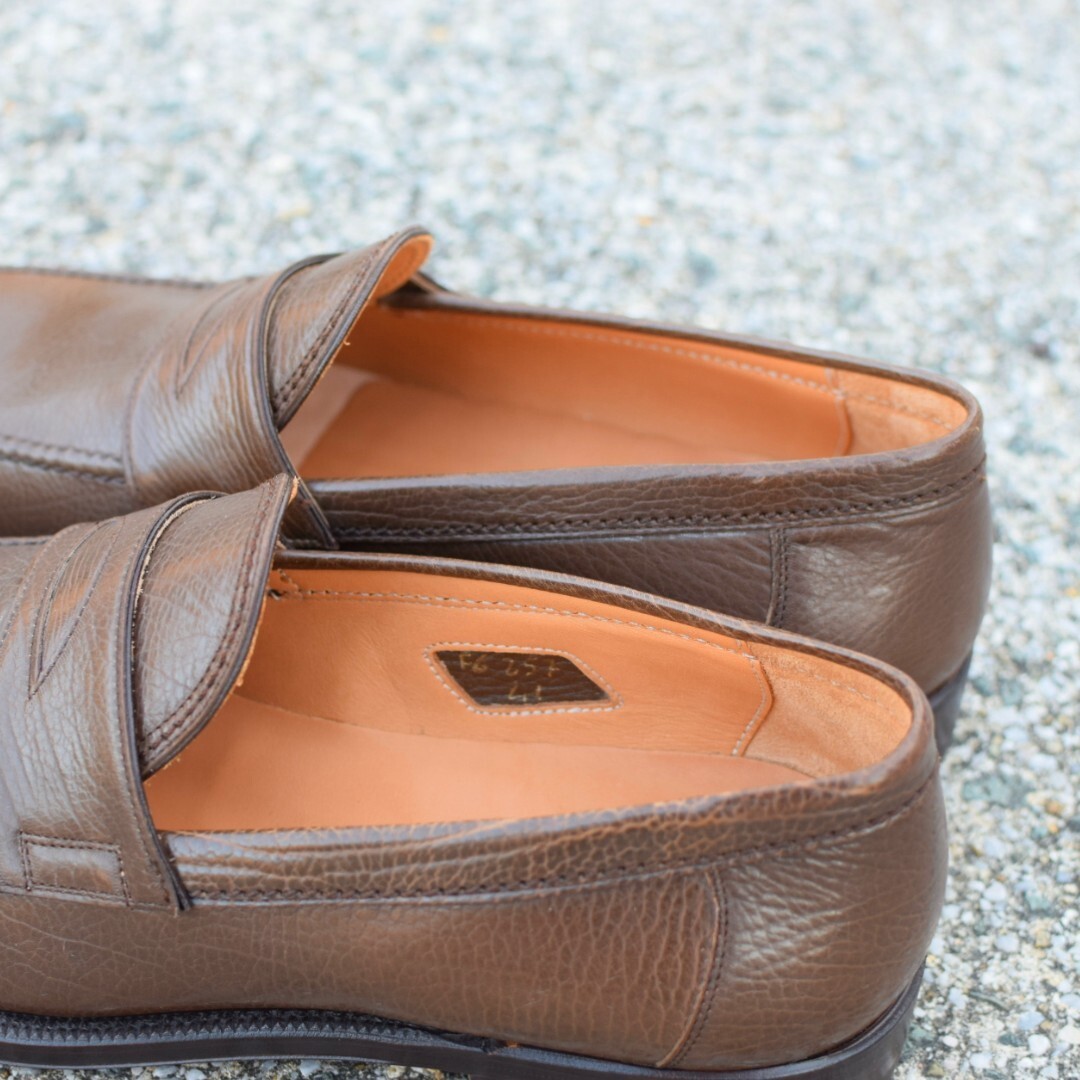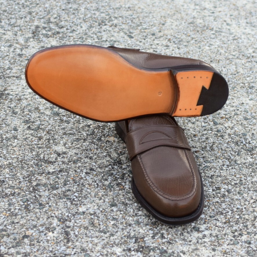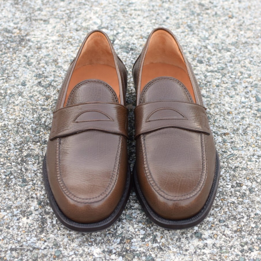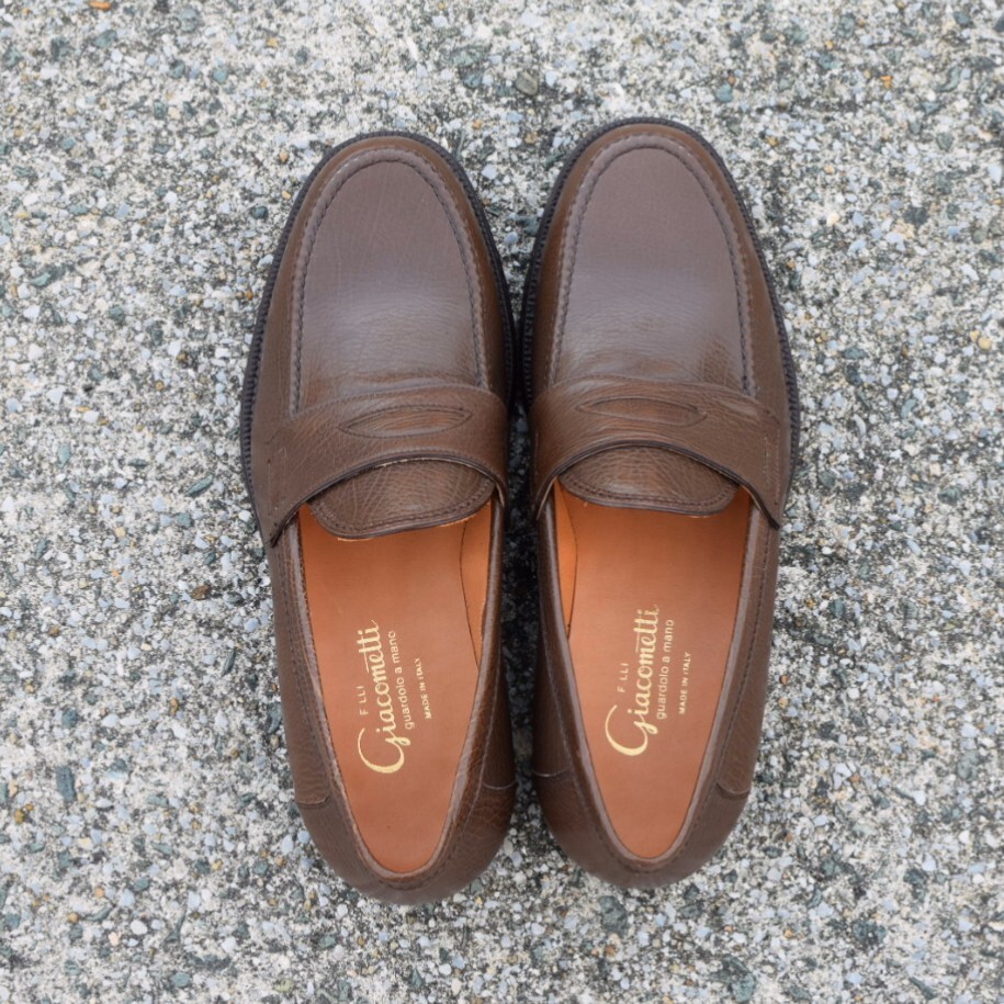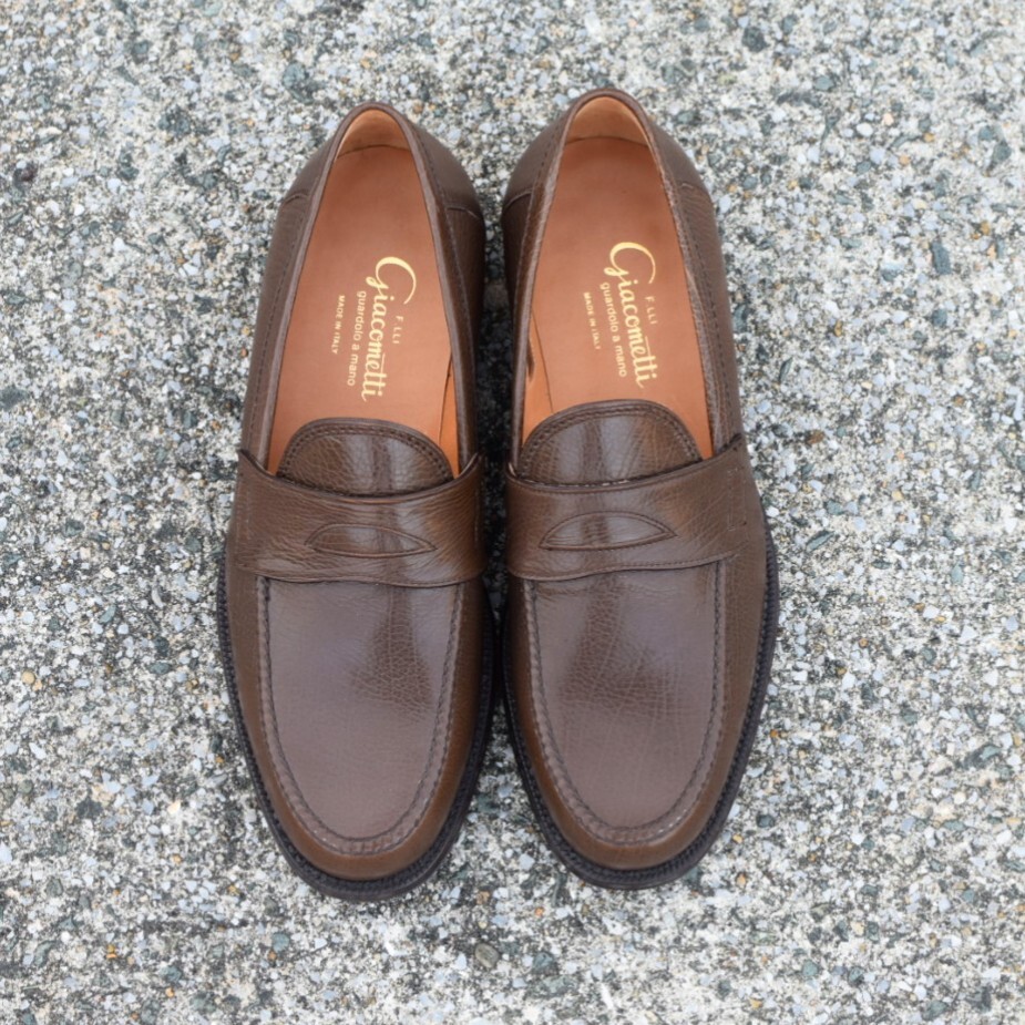 フラテッリジャコメッティのFG257ペニーローファー。名品Luigino木型を採用し、手縫い作業で仕上げていくモカ縫いなど随所にジャコメッティの技術力を感じる事が出来るモデルです。