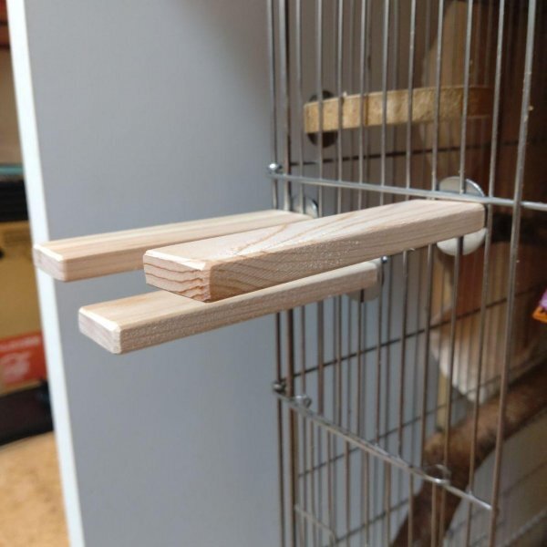 大人気!檜の四角い止まり木をゲージに留めやすいようにしてみました