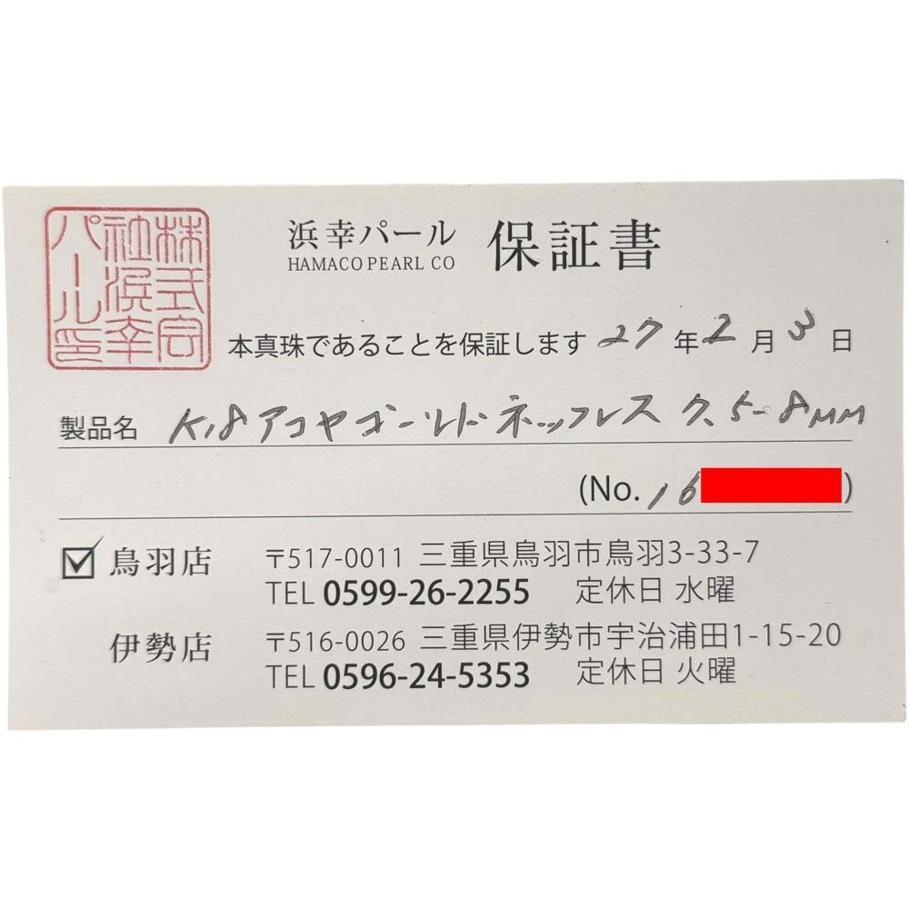 | 南店25-725 【美品/保証書付】 浜幸パール K18 あこや ゴールド パール ネックレス 7.5mm ~ 8.0mm 42cm 20.48g 28玉 真珠 HAMACO PEARL | |