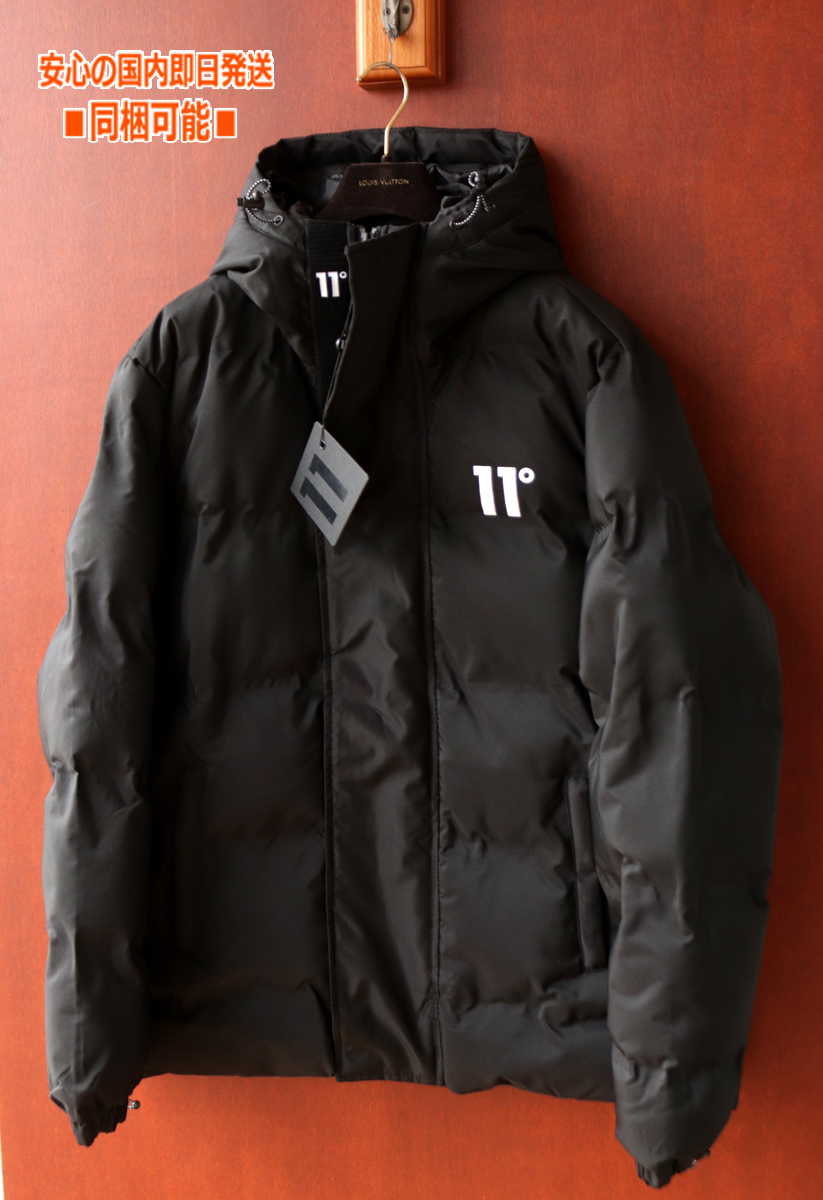 新品 正規品■イタリア11° 黒 中綿 軽量 コート L【 黒 L~XL 】メンズ ジャケット セレブ フェイク-ダウン フード ブラック 防寒 アウター