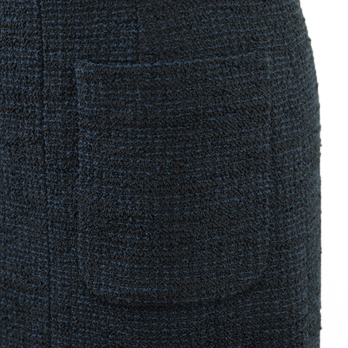 カラーCHANEL シャネル スカート 2013年 P45116 コットン混 ツイード フロントポケット 裾フリンジ CCボタン x 紺 x 黒