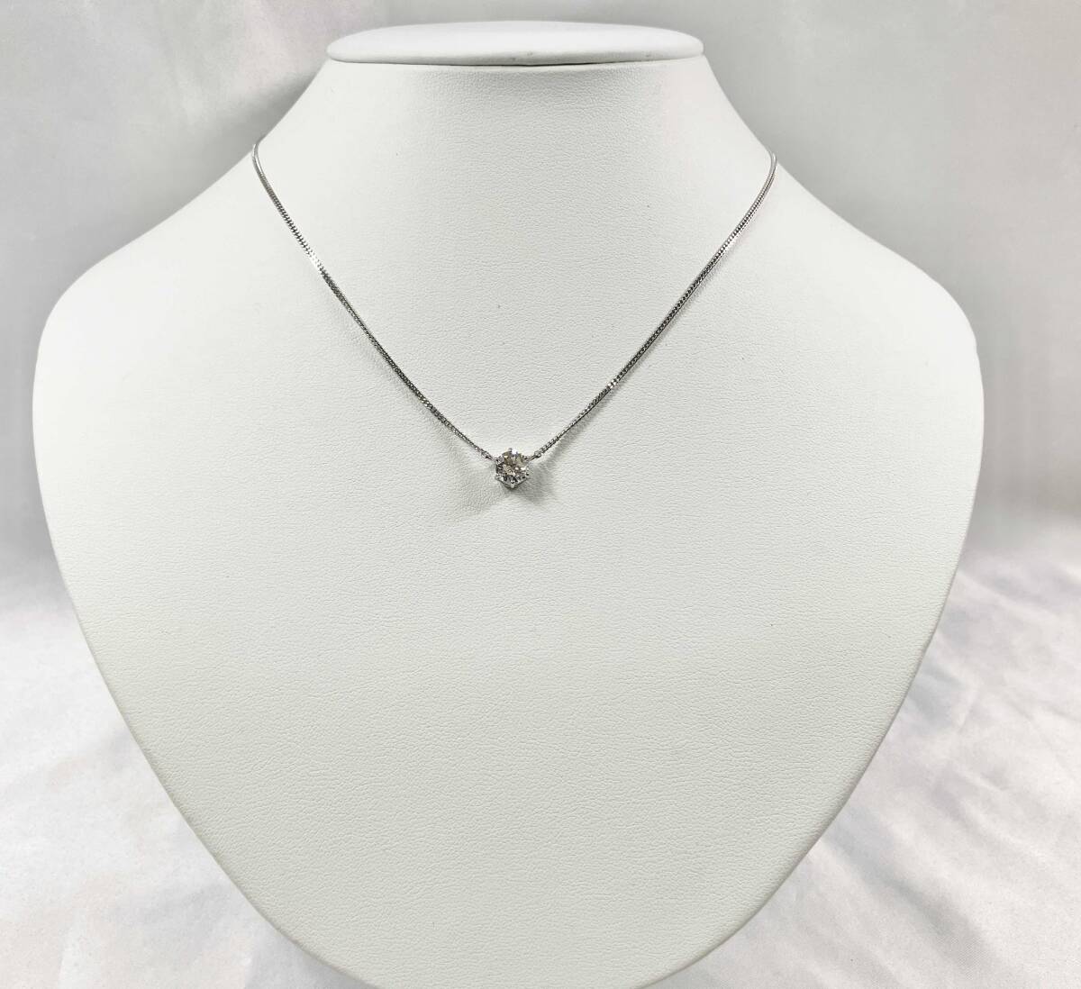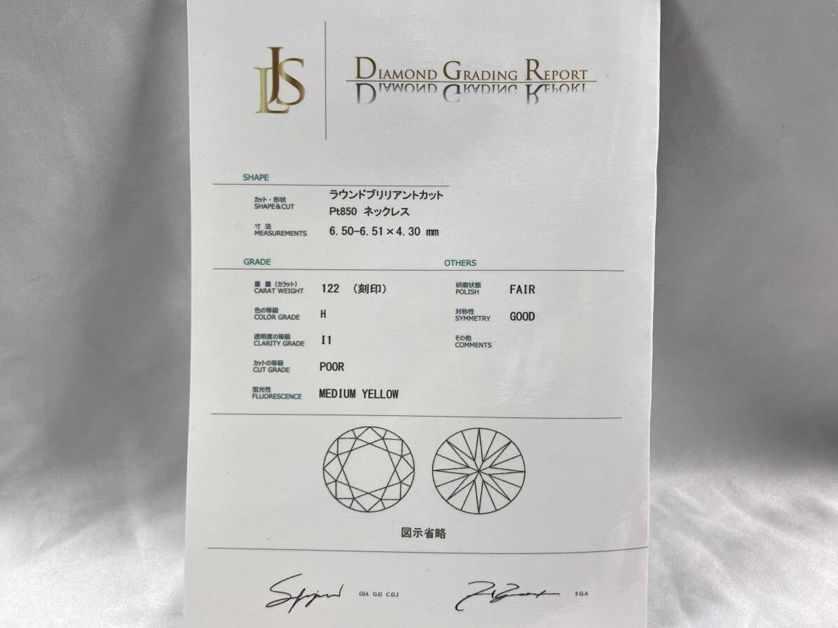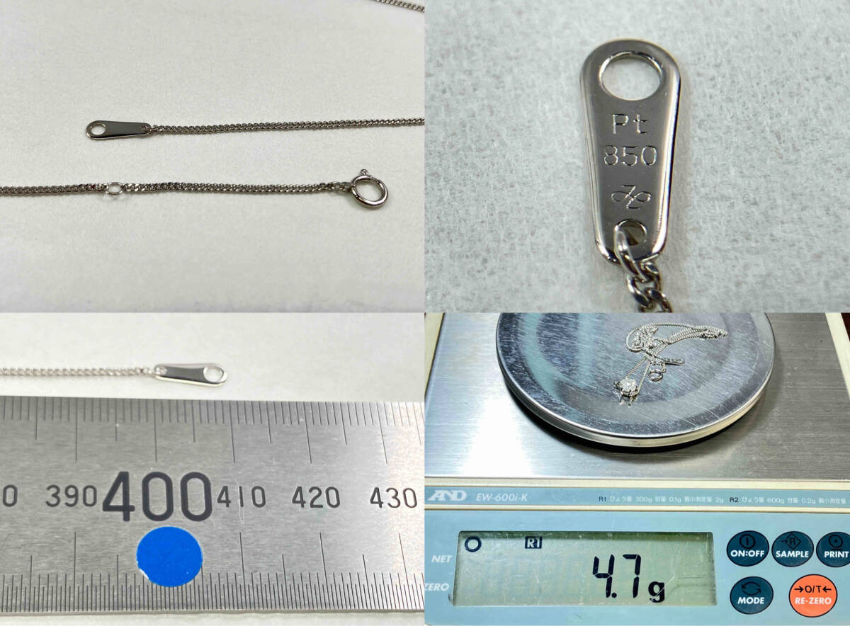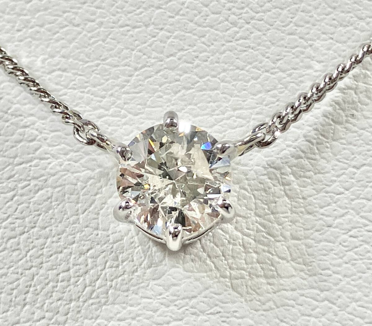素材:Pt850 品名:ネックレス 宝石名:ダイヤモンド カラット:1.22ct クラリティ:I-1 カラー:H カット:POOR チェーン全長:約41cm トップサイズ:約6.5mm 総重量:約4.7g 画像のものが全てです。 ※サイズはスタッフが手作業だ計測しており、誤差が生じることがございます。予めご了承ください。 ※当店の殆どの商品は中古のお品物でございます。その為、中古品の時点で小傷はあるものとご理解の上お買い求めください。 | ||||||