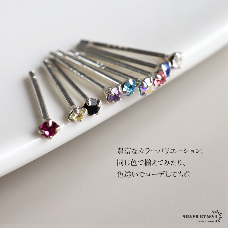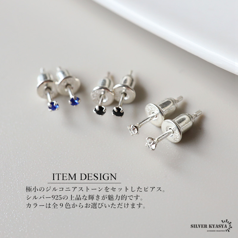 極小のジルコニアストーンをセットしたピアス。シルバー925の上品な輝きが魅力的です。カラーは全9色からお選びいただけます。