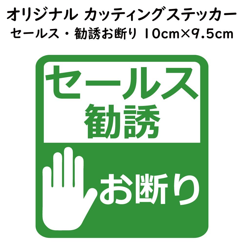 ステッカー 【 セールス勧誘お断り ハンドサイン ライトグリーン 縦10cm×横9.5cm 】 シール 玄関 表札 文字 カッティングステッカー