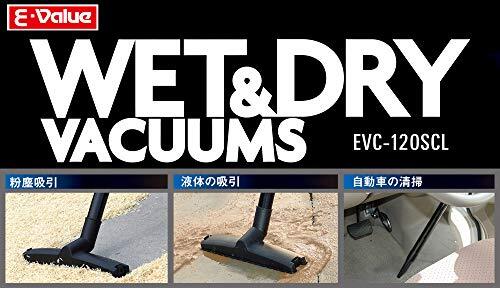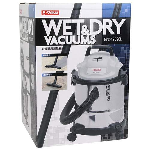 「E-Value 乾湿両用掃除機 12L EVC-120SCL」▼4977292489386▼(商品説明)ステンレスタンク・シルバー、ブラック 12L EVC-120SCL・・Size:12LStyle:ステンレスタンクPatternName:単品・電源:100V・50/60Hz・電流:6A・消費電力:600W・最大風量:1.63m3/min・最大真空度:11.0kPa説明 小型ステンレスタンクの乾湿両用掃除機 【用途】 乾いたゴミ、濡れたゴミの清掃 【特徴】 ・乾いたゴミも、湿ったゴミも吸引できる掃除機 ・丈夫で錆びにくいステンレスタンク ・小回りのきくコンパクトボディー ・ブロワー機能付き ・ヘッド部分でホースを固定でき、収納時に便利 【注意事項】 ※雨中で使用しないでください。