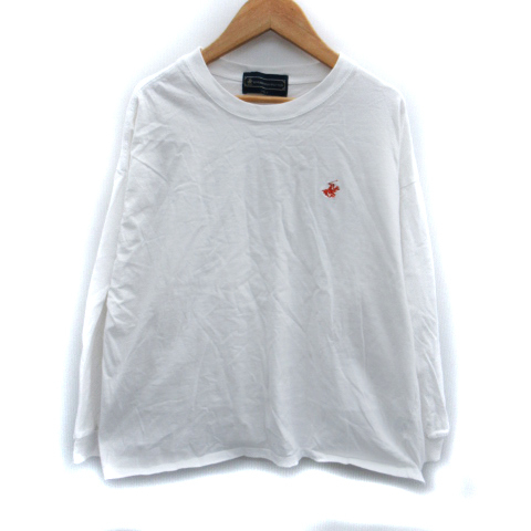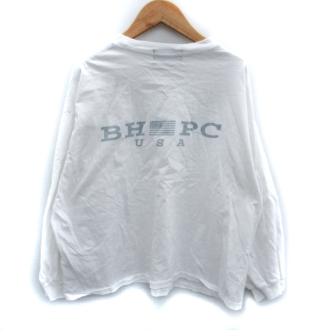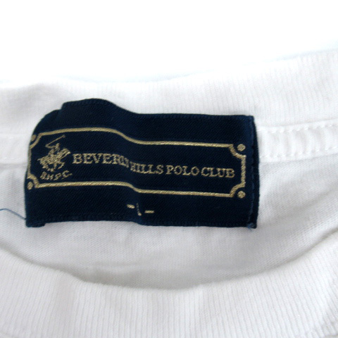 ビバリーヒルズ ポロクラブ BEVERLY HILLS POLO CLUB Tシャツ カットソー 長袖 ラウンドネック プリント ロゴ刺繍 L 白 ホワイト