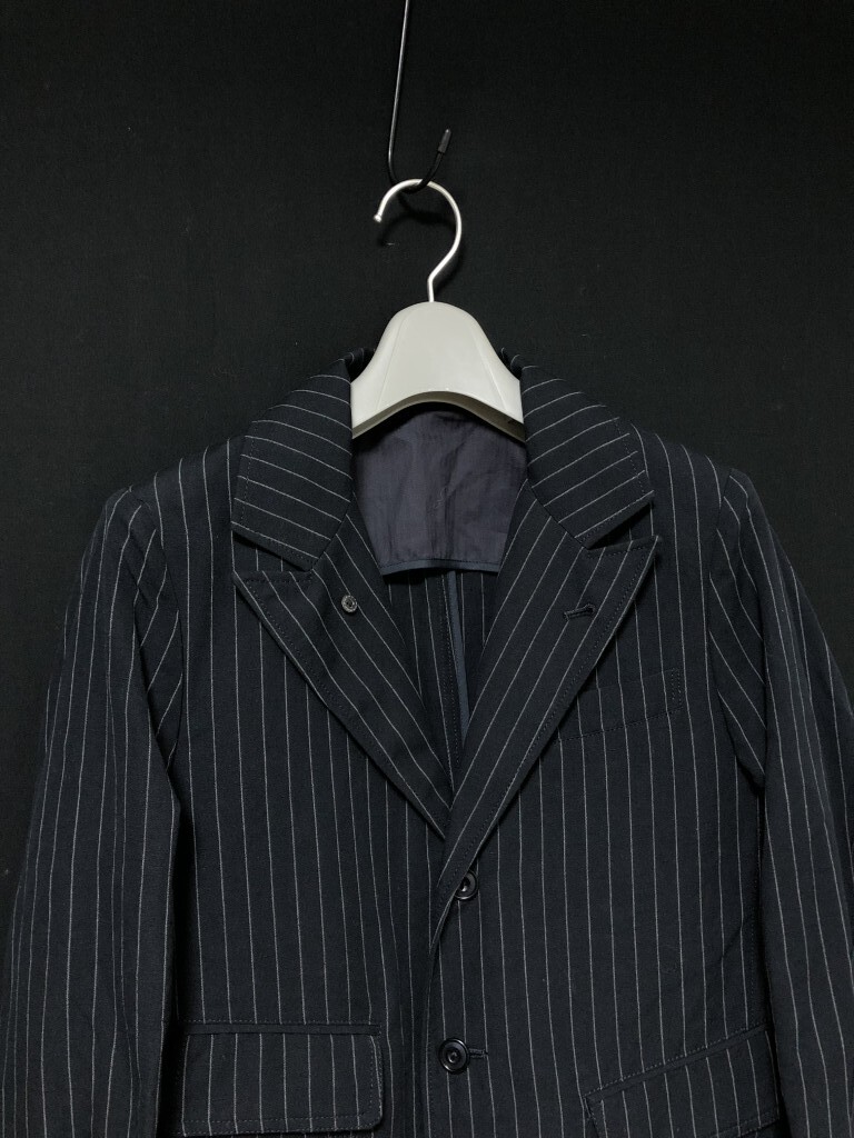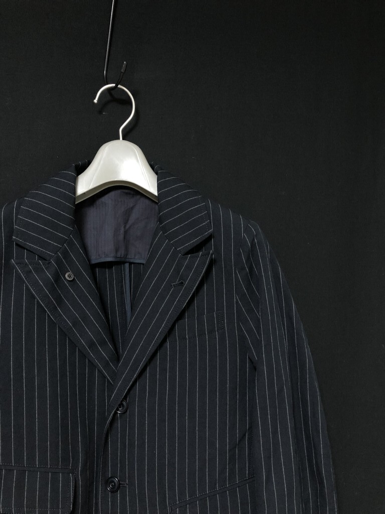 生地洗いを施した綿麻チョークストライプ素材を使用。
