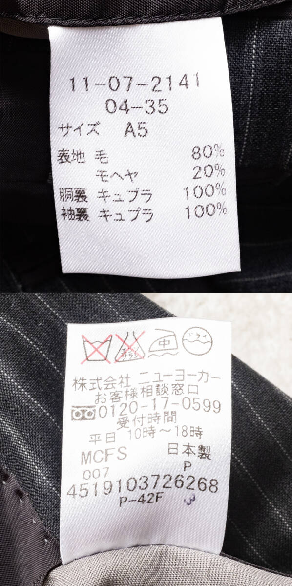 ジャケット サイズ A5 着丈:72cm(後身頃計測) 袖丈:58.5cm 身幅:50cm(脇下縫製部分計測) 肩幅:41.5cm パンツ 総丈:101cm 股下:77cm ウエスト:39cm×2 ワタリ:30cm(股下0cm部分計測) 裾幅:20cm 裾折り返し幅:10cm(裾直し参考となります) ※スチールスケールでの素人採寸の為多少の誤差ご了承ください。 ●仕様● ウール モヘア生地 (軽量感のある春夏秋向け) 2釦 背抜き裏地 開き見せ袖 フラップポケット サイドベント ワンタック ネーム刺繍なし 日本製 ●状態● 軽い使用感はありますが比較的未使用に近い印象を受ける良好な状態です ●アイテム詳細● トラッドブランド『NEWYORKER』のセットアップスーツになります。 やや軽量感のあるウールモヘアで日本の気候に適した生地感で上質な風合いです。 ハイクラスな国産アイテムですのでこの機会をお見逃しの無いよう、是非ご検討くださいませ。 ☆必ずお読みください ◯こちらについた悪い評価の大半が新規IDと評価の悪いクレーマーによる報復評価で大変迷惑しております、その為総評価10未満または良評価率98%以下の方は入札はお控えください。即決などで落札された場合でも24時間以内に決済まで終わらない場合落札削除しますのでご了承ください。 ◯昨年より業者様の荷受けサイズの測定が非常にシビアになり送料の超過/不足が多発したため品物の大小問わず一律100サイズ料金設定となります、同梱の場合は何点でも一律100サイズ料金です。 ※同梱は1点目のご落札から3日間までお取り置き可能ですので商品が揃いましたら「まとめて取引」を選択、又は各々決済される場合は[2点目以降は送料0円に打ち替えてご決済]頂きその旨をコメントでお伝えください。 ◯入札後の取り消しはお断りしておりますので、慎重なご入札をお願い致します。 また、評価の悪い方はトラブルが多く入札を取り消しをさせて頂く場合がございます。 ◯発送は悪天候や特殊な事情がない限り、お支払い確認より最短当日~48時間以内に行わさせていただきます。日中は働いておりますのでご理解をお願い致します。 ◯画像に写っているタイ、チーフ,ハンガー,シューキーパーなどは表記が無い限り付属致しません。 ◯ご質問に関して、なるべく回答出来るよう心がけてはおりますが、 見過ごしや回答でき兼ねる場合もございますので、 納得出来ない状態でのご入札はお控えください。※オークションルールの常識ですがご落札後の交渉等もお控えください。 ◯基本的にノークレームノーリターンとなりますが、商品説明や画像に無い、補修も困難な程使用上問題が生じる大きな破損などがございましたら宅配便到着から24時間以内にご連絡下ください。返品/返金にて対応させていただきます。 ◯私の出品物に限らずですが個人オークションのユーズド衣類は常識的に未クリーニングの物もございます、汚れや小傷など見落とす可能性がありますので中古品の特性をご理解の上でご入札ください。 ◯高級紳士服はセミオーダー品が殆どですのでポケット内の品質タグに依頼者名が入っている場合がございます、生地に刺繍されている場合は必ず明記または写真で説明致しますのでご安心ください。 ◯衣類は配送時などのたたみ皺がつく場合があります、気になる場合はスチーマーなどでの皺伸ばしをお願いいたします。 ◯スマホ/PCの機種により画面の色が多少異なる場合があります、品物の色を細かく確認される場合はお問い合わせください。 ◯評価漏れが起こる場合がありますので、評価必須の方はご一報頂けますと幸いです。 最後までお付き合い頂きまして誠にありがとうございました!長年のリピーター様はもちろん、多くのご新規様に支えられ大変感謝しております。今後も拘りの品を定期的に出品してゆきますので今後ともよろしくお願い申し上げます。 | |||