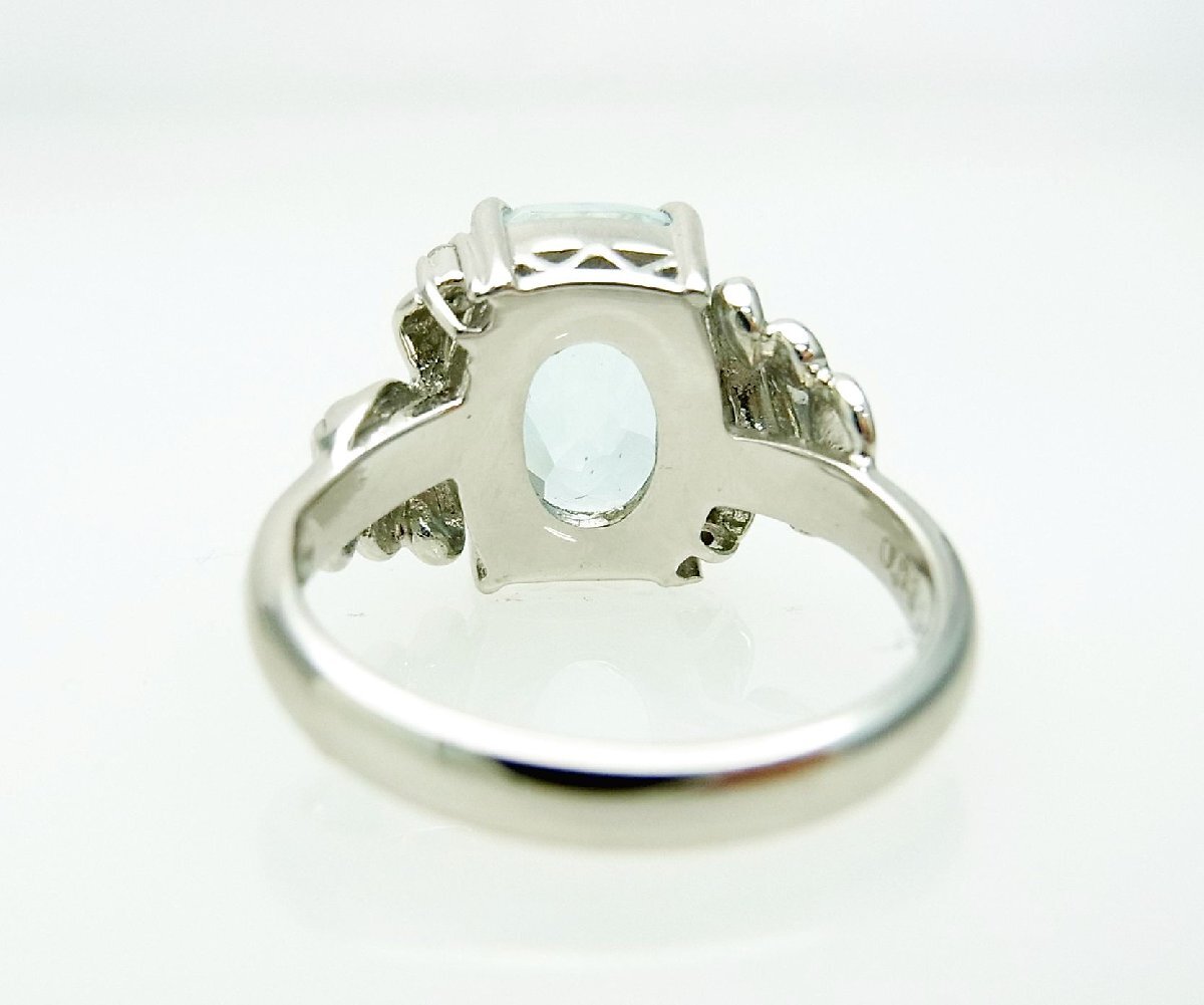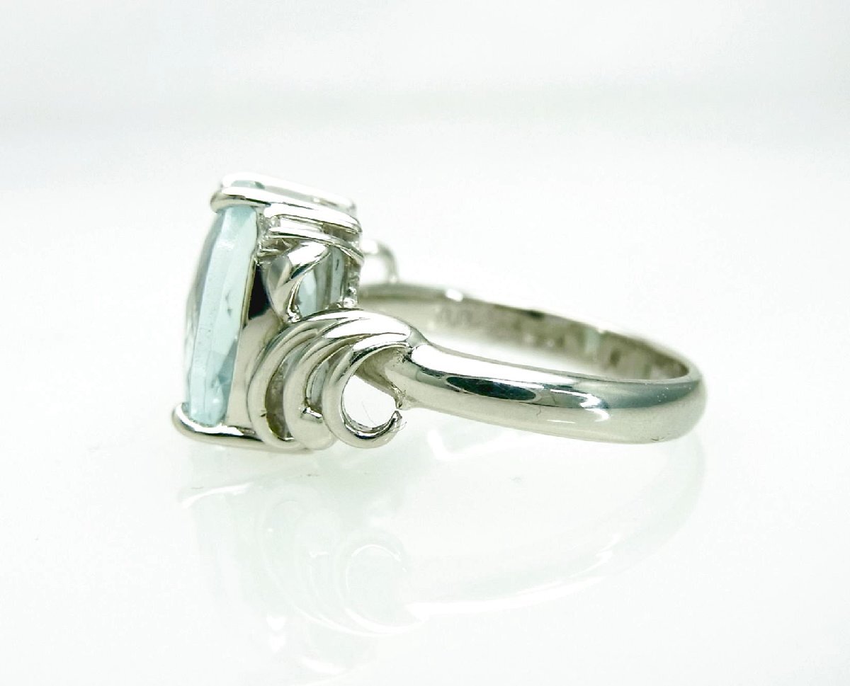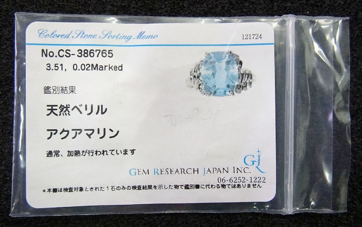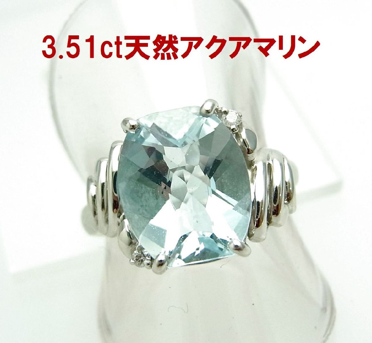 大粒で非常に綺麗な上質天然アクアマリン 3.51ct 天然ダイヤ取巻プラチナリング 商品動画 送料込み