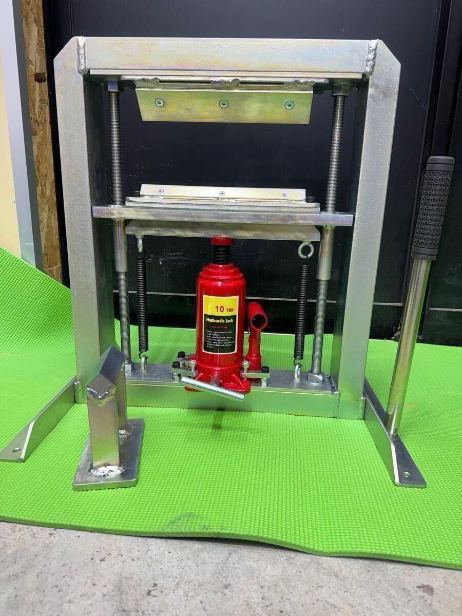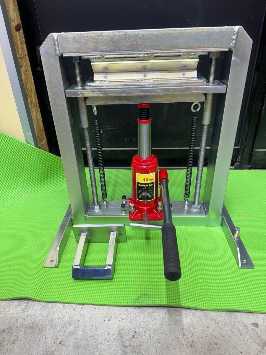 下側の型はジャッキのバルブを緩めるとスプリングの力で自動で下がるようになっています。