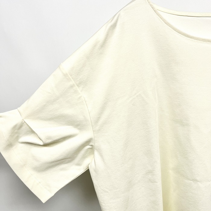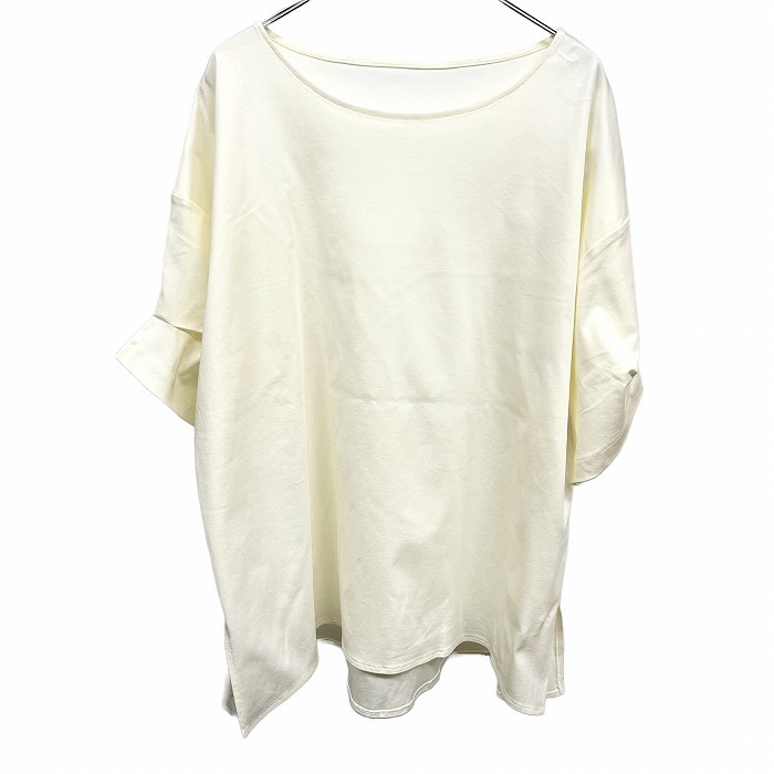 | 商品タイトル | ウタオ 【新品/訳アリ】UtaO Tシャツ シルケット 袖変化 プルオーバー 無地 5分袖 裾スリット 綿100% L アイボリー 生成り色 レディース |