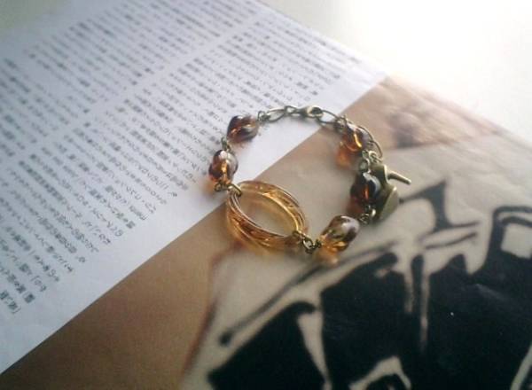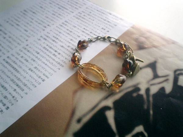 恋する人・・シリーズです♪琥珀色の誘惑・・アンニュイな琥珀色の樹脂ビーズのブレスレットです♪ナツメやリングなどデザイン違いの琥珀色の樹脂ビーズを集めてシックで印象的なブレスレットです♪10×14ミリのツイストナツメや30×20ミリのツイストリングです♪長さは全長23センチ位で調節自由です♪お揃いのネックレスも出品しています♪同じシリーズをyouko13570でも出品しています♪シンプルで飽きのこないいつまでも着けられるデザインを考えて作りました!ハンドメイドをご理解頂いてノークレーム、ノーリターンでお願いします