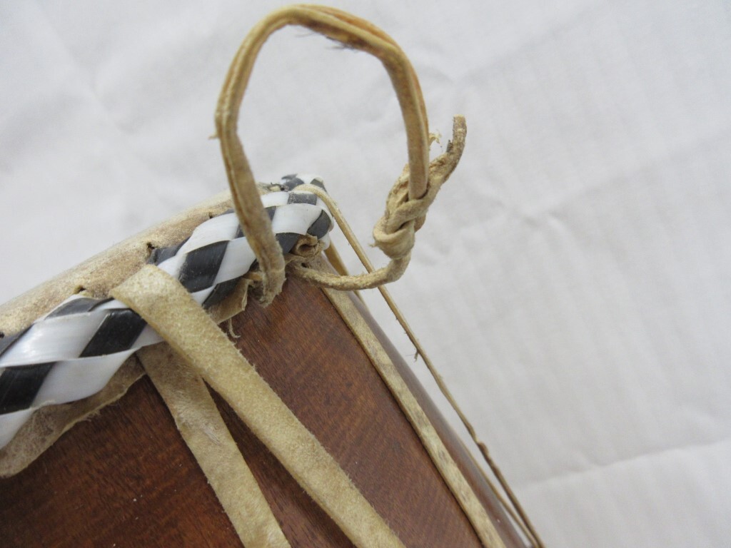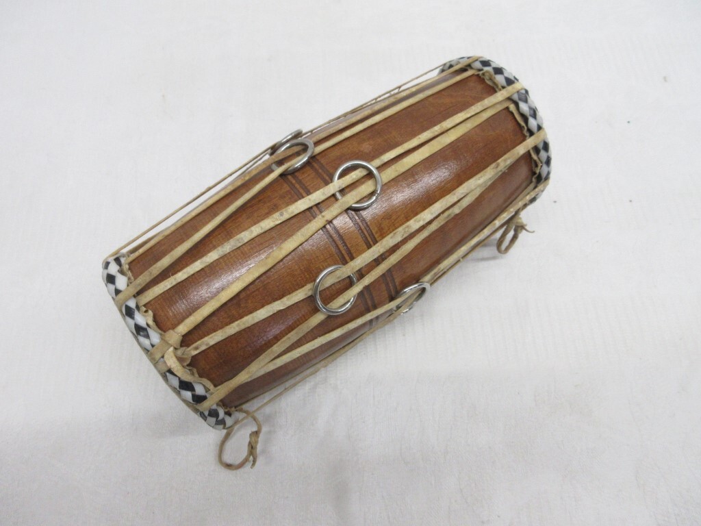 03Y014 【 保管・中古品 】 ネパール 民族楽器 打楽器 [ 全長(約)25.5cm ] 木製楽器 両面太鼓 現状渡し