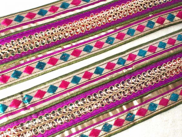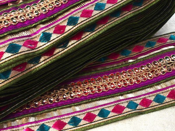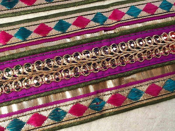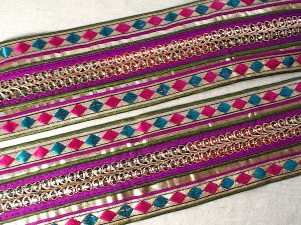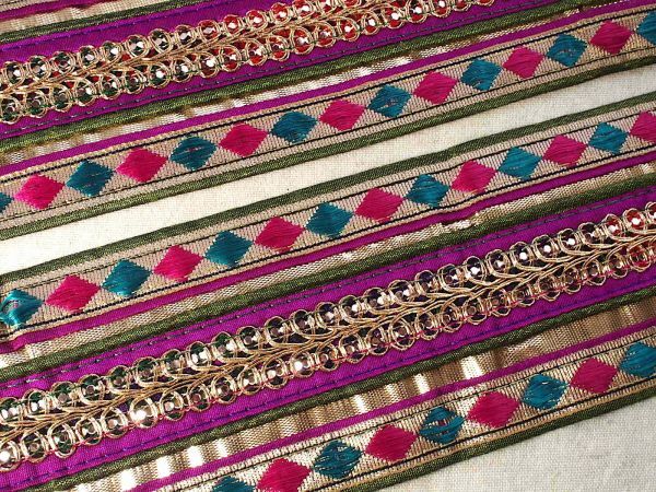1m カット スパンコールブレード 96 赤紫☆エスニック トリムテープ