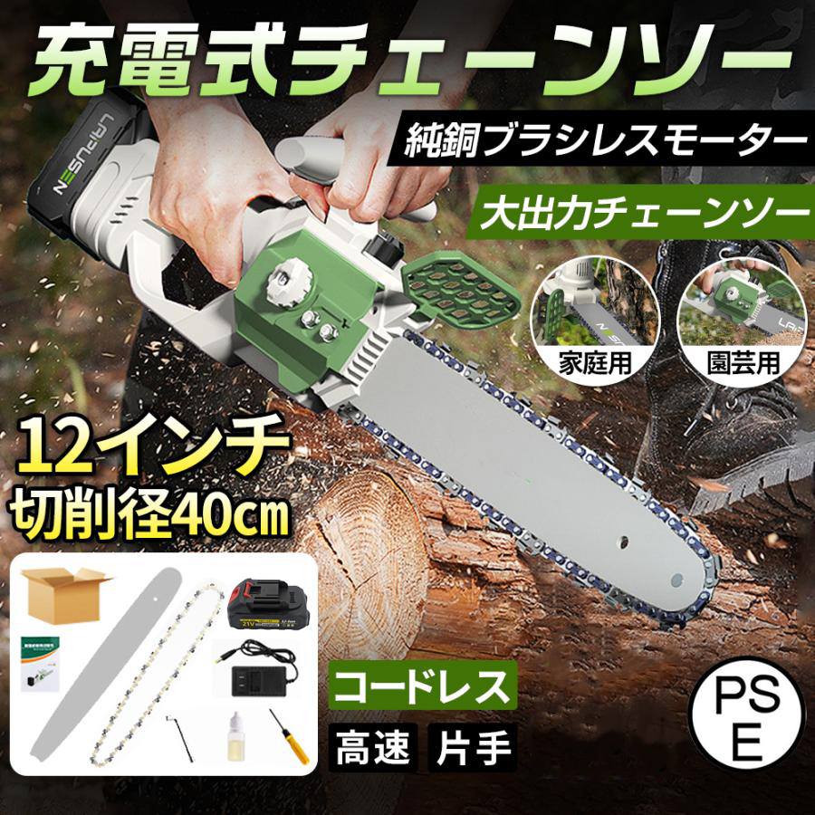 【正規品】 チェーンソー 充電式 12インチ 切削径40cm マキタ バッテリー互換 電動ノコギリ ハンディチェーンソー 安全ロック 高速切断