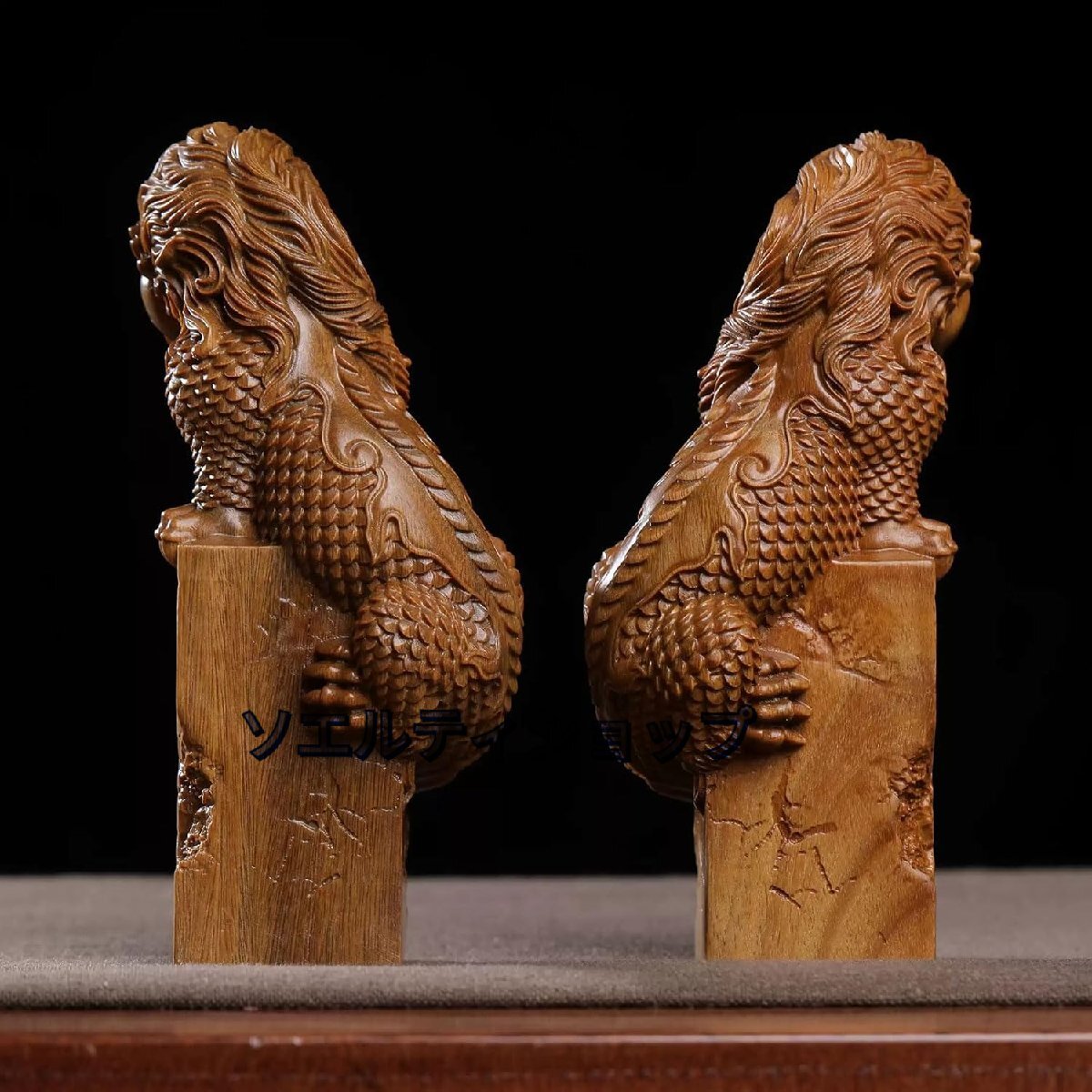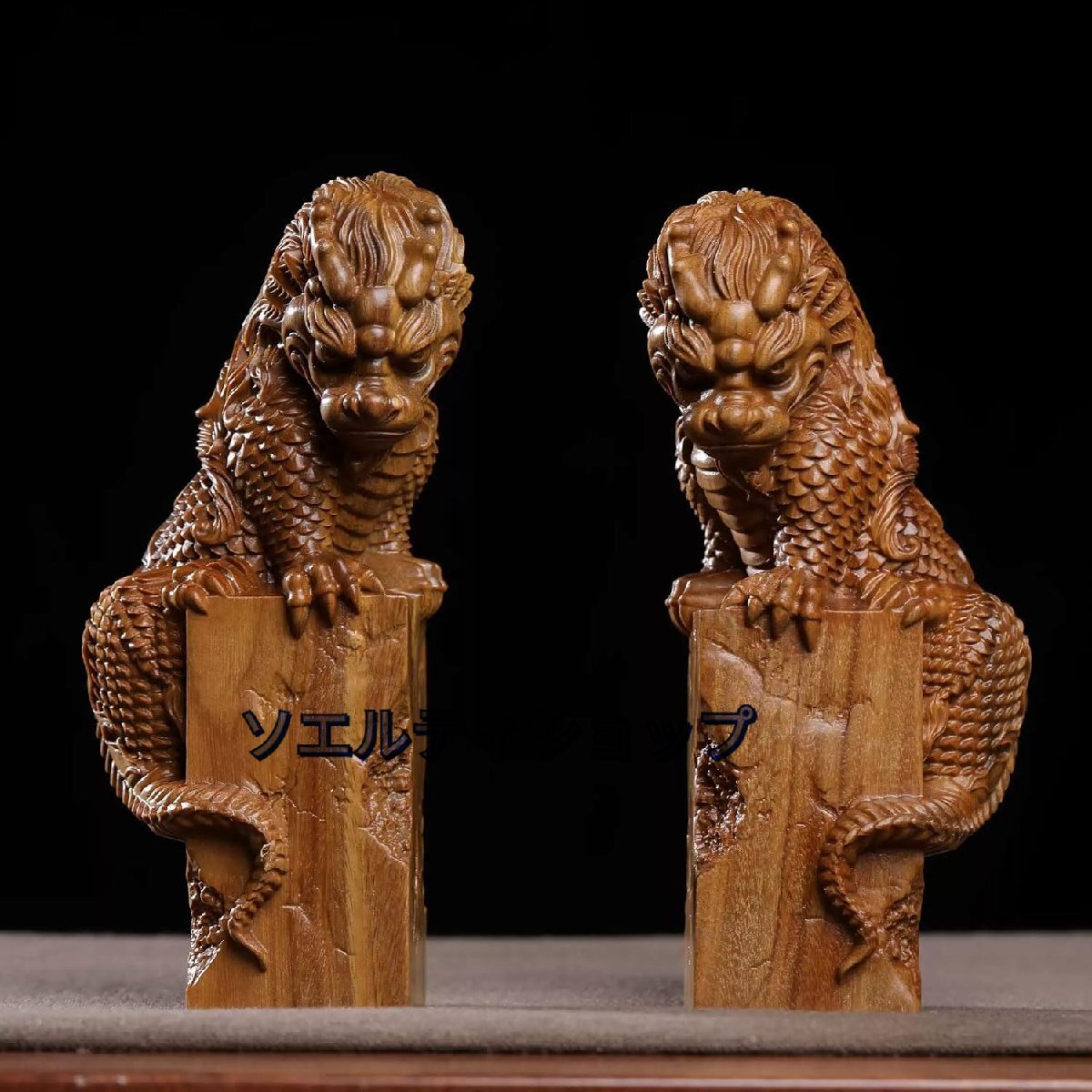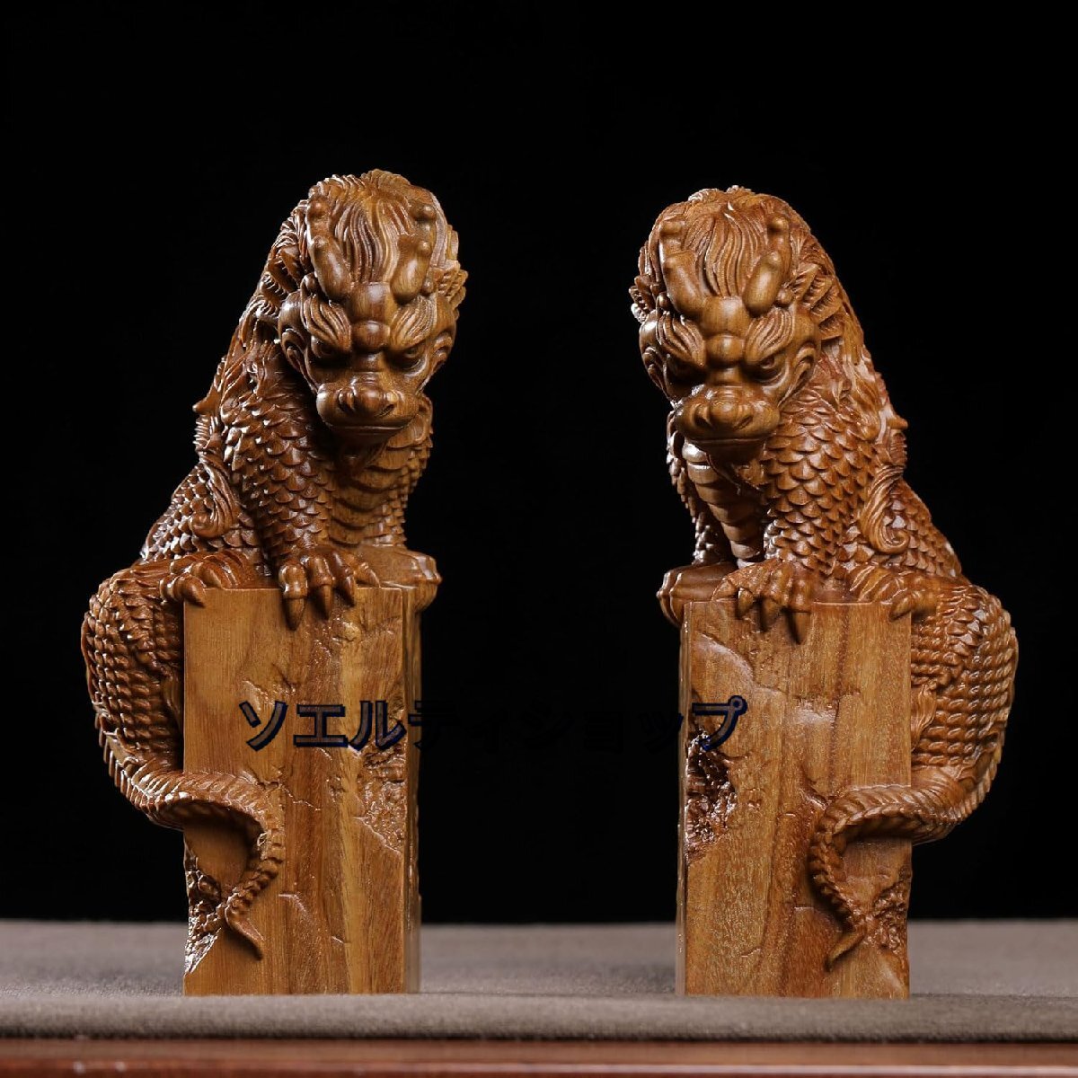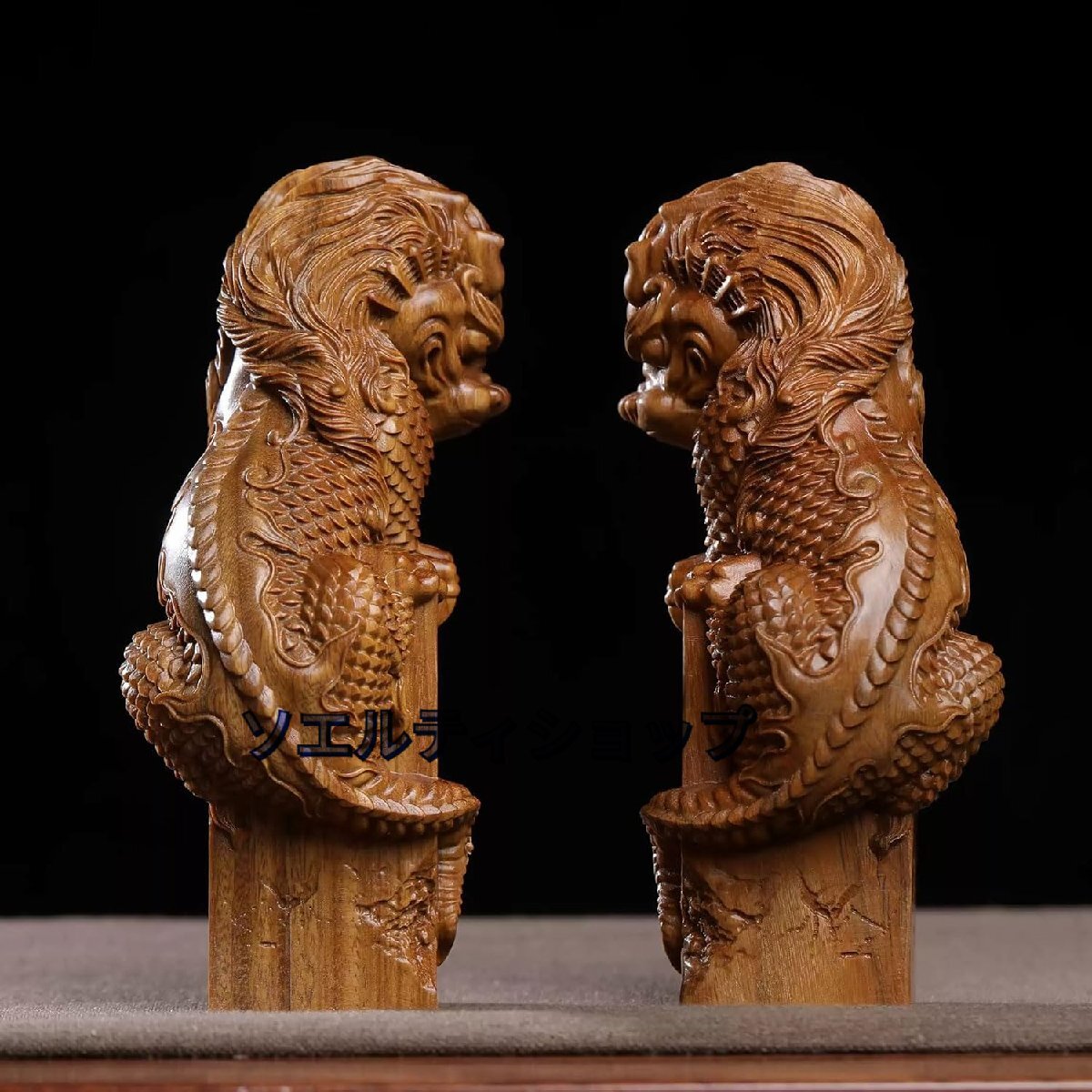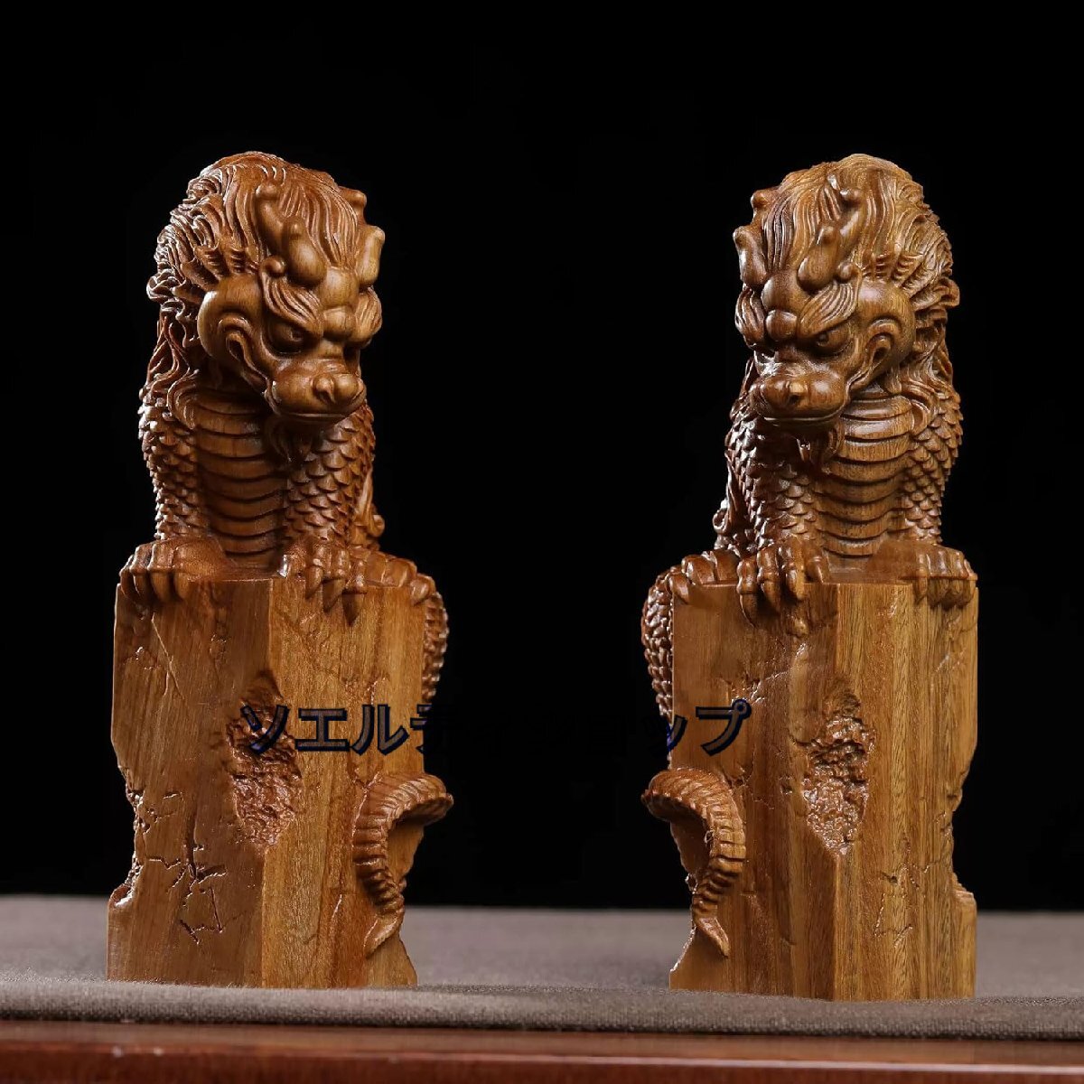木彫りの置物【麒麟】2体セット 木製 15cm 風水置物 厄除け 魔除け