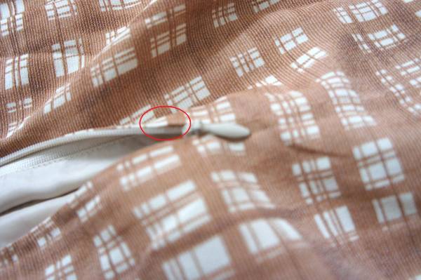 バックファスナーの一番下付近の表地の縫い目が少しほどけてきています。