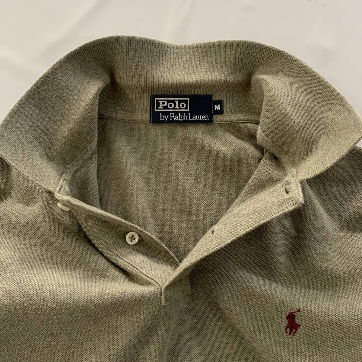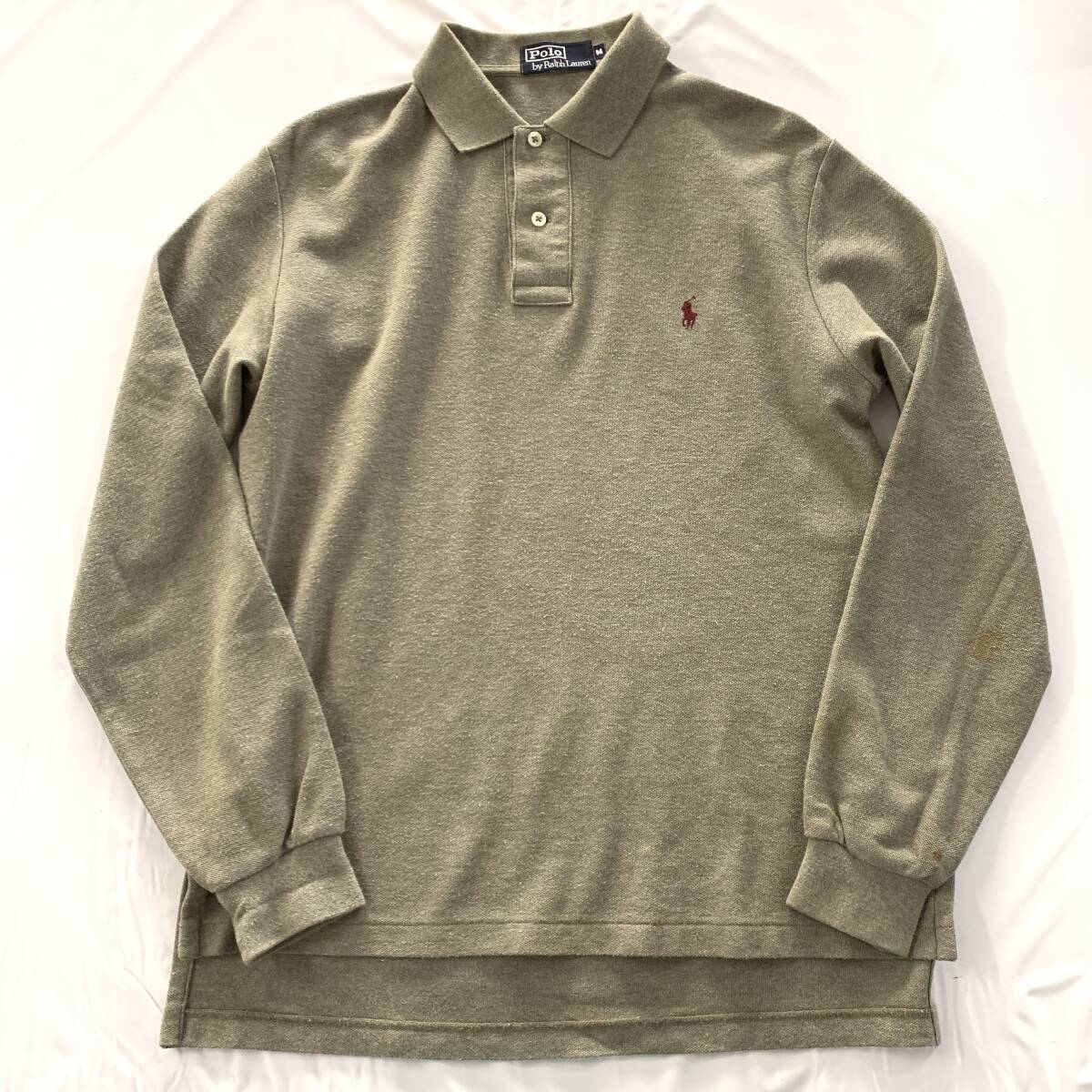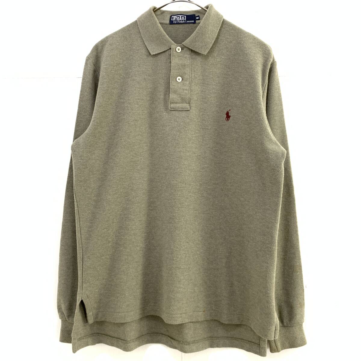 ☆Polo by Ralph Lauren ポロ ラルフローレン 90s Vintage 長袖ポロシャツ トップス カーキ系 サイズM 綿100【レターパックプラス郵送可】M