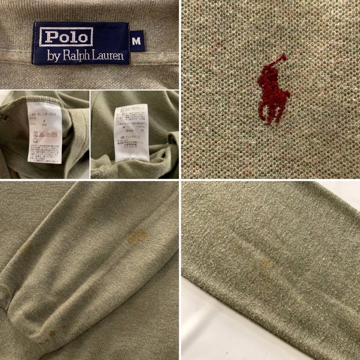 ☆Polo by Ralph Lauren ポロ ラルフローレン 90s Vintage 長袖ポロシャツ トップス カーキ系 サイズM 綿100【レターパックプラス郵送可】Mの出品です。