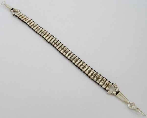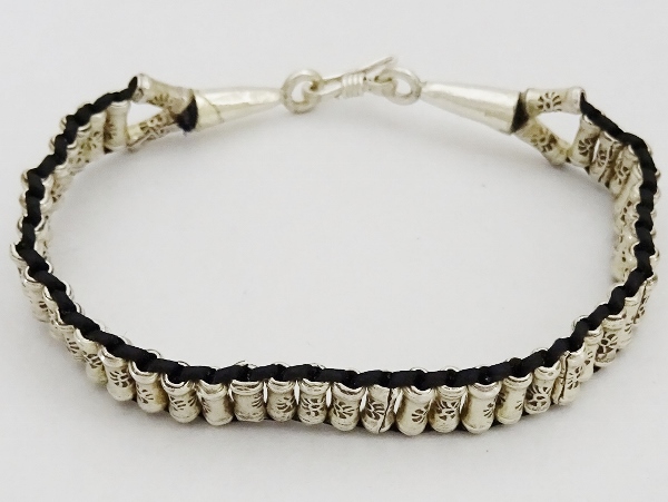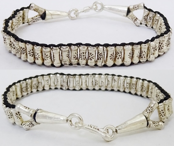 | ◆カレン族シルバーブレスレット ワックスコード 黒◆約18.5㎝◆刻印【08nb06】 |