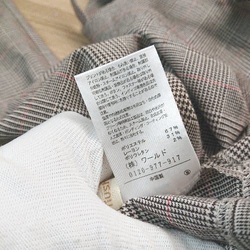 ◇ HusHusH ハッシュアッシュ タータン チェック フリル ワンタック セットアップ サイズM ブラウン レディース E
