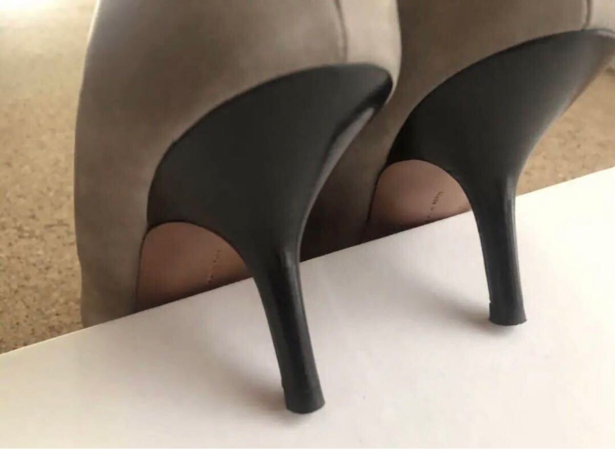特徴的なVカットのシンプルで上品なデザインで、グレージュというお色も服を選ばずどんなコーディネートにも合わせやすいので、幅広くお使いいただける一足です。