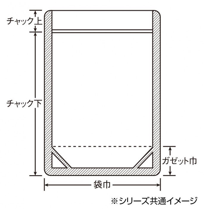 サイズ | 留め口上32+留め口下420×袋巾(ガゼット巾)300(60)mm 個装サイズ:33×5×52cm |