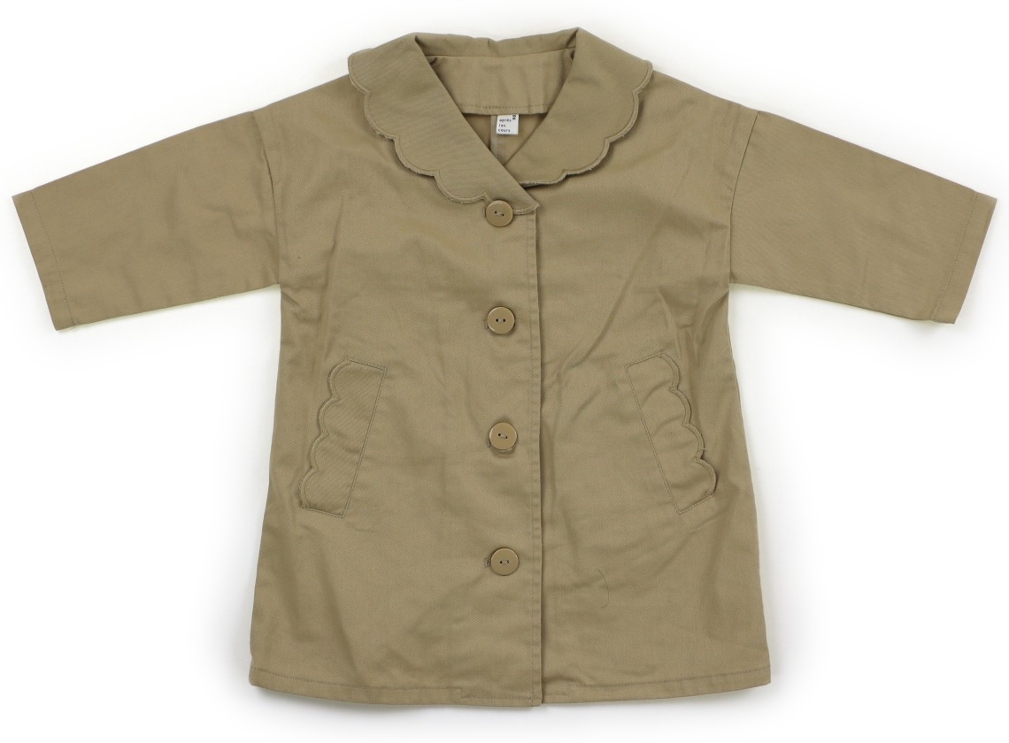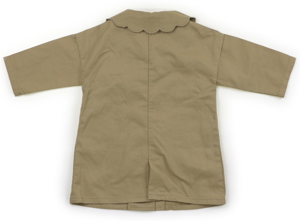 ポリエステル、綿、レーヨンのツイル布帛生地1枚仕立てです。衿はし、ポケット端はスカラップデザインです。前ボタンあき。センターベンツ。目立つ汚れはありません。