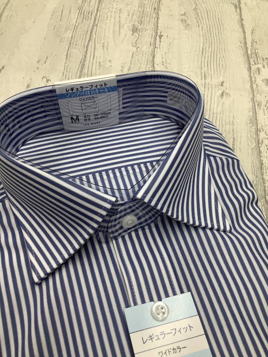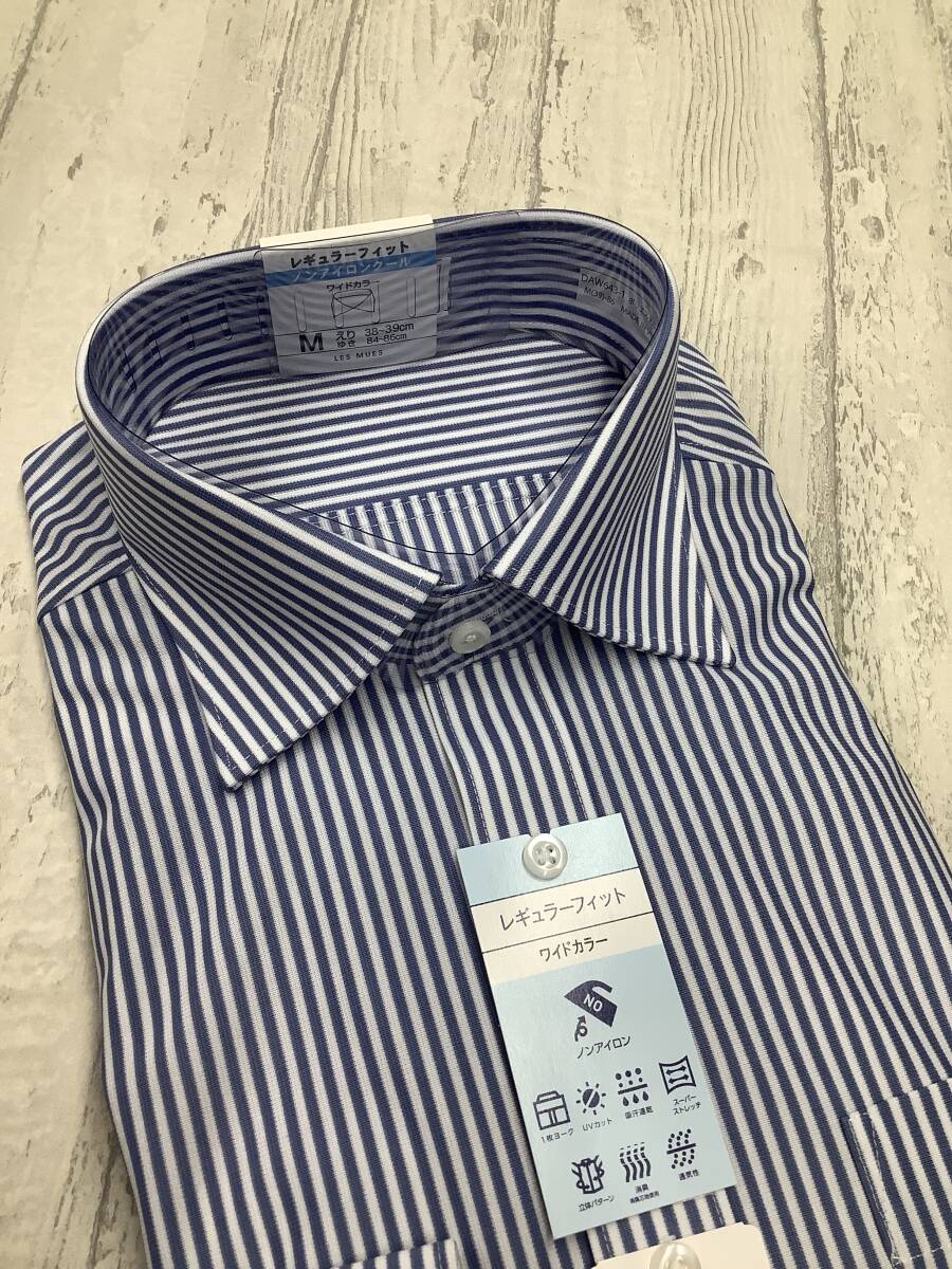 39-86 長袖Mサイズ ★快適ニット生地 ブルーストライプストレッチ ワイドカラードレスシャツ 定価4,990円 ドレスシャツ
