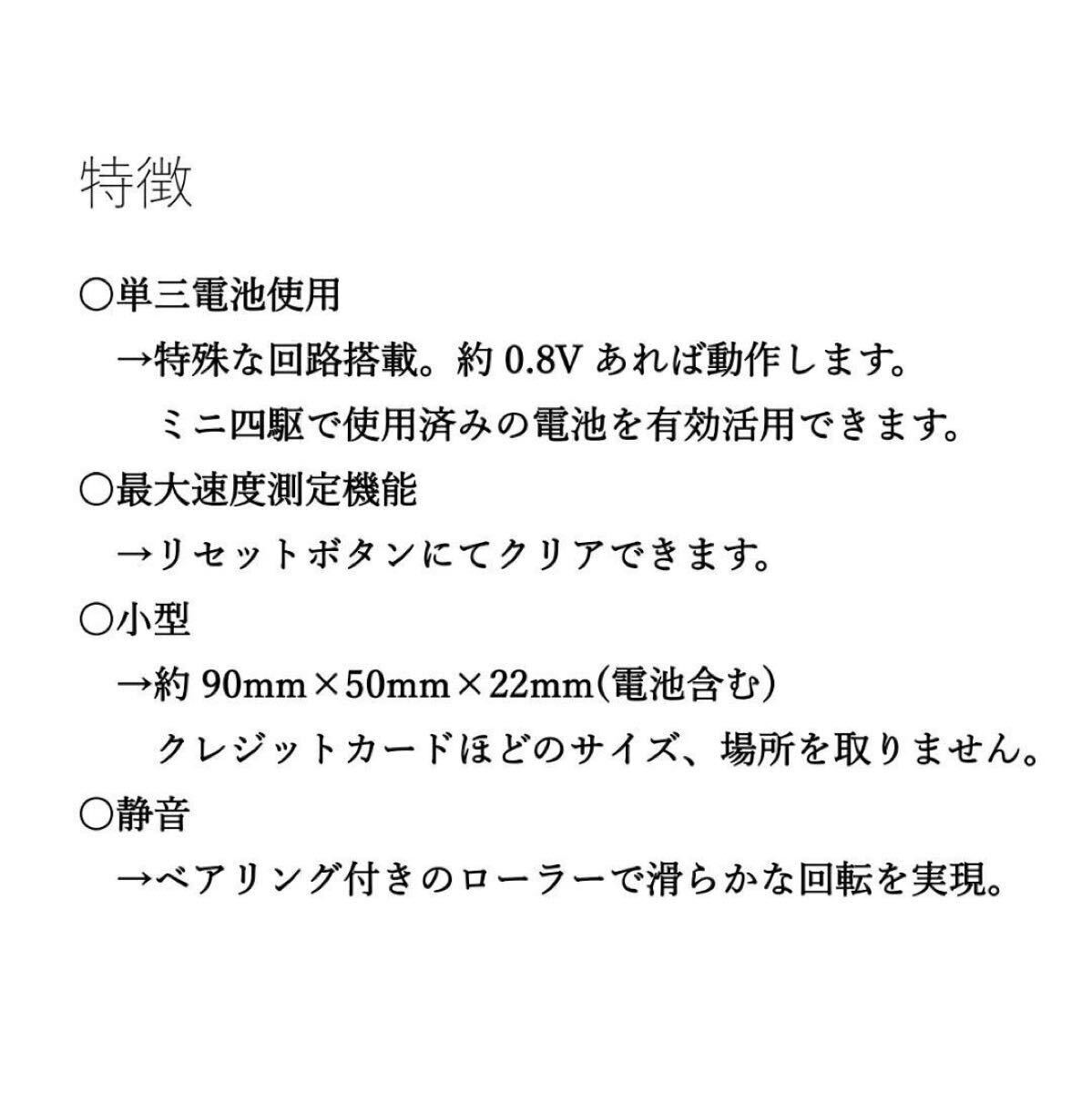 ケースは3Dプリンター製です。特有の積層跡、製作時の小傷、汚れ等ある場合がございます。画像にてご確認ください。 タミヤ製のスピードチェッカーとの誤差はほとんどありません。 ※同じ負荷、測定位置のもと測定いたしました。 強い衝撃を与えると破損する場合がございます。