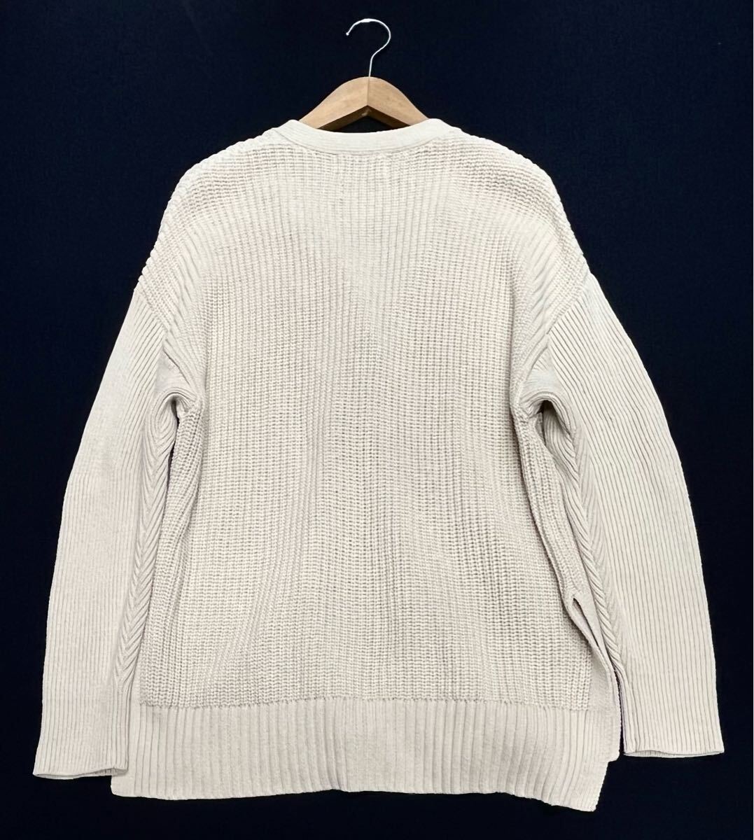 ・アシメボタンがおしゃれな畔編みニットカーディガンです。