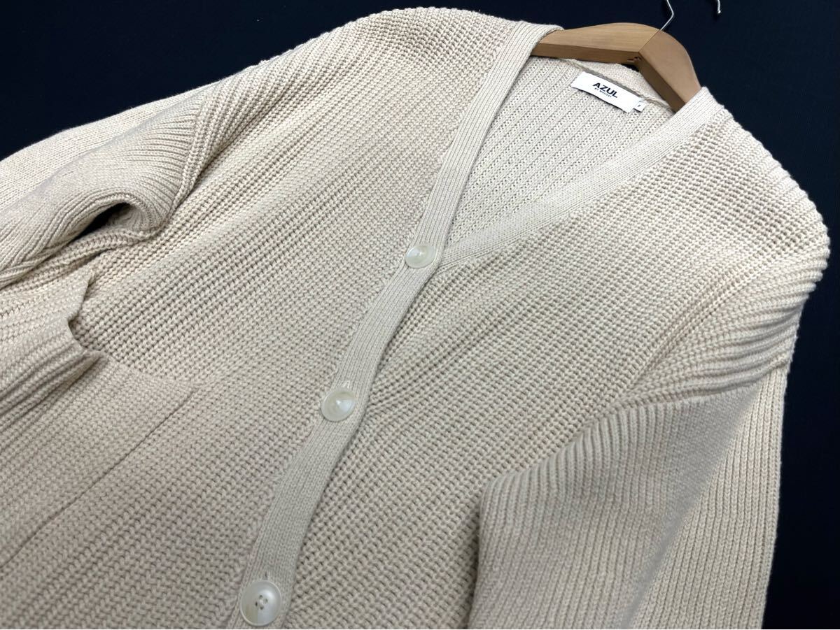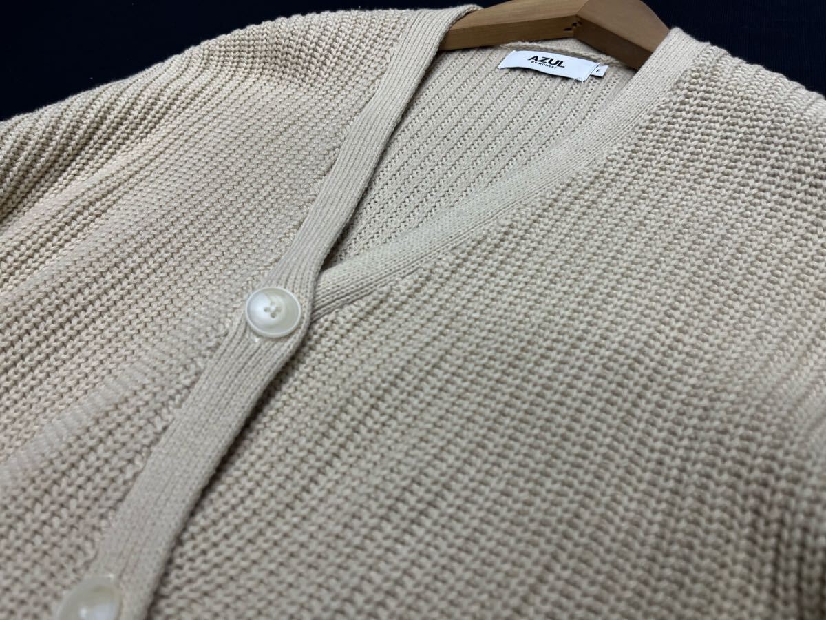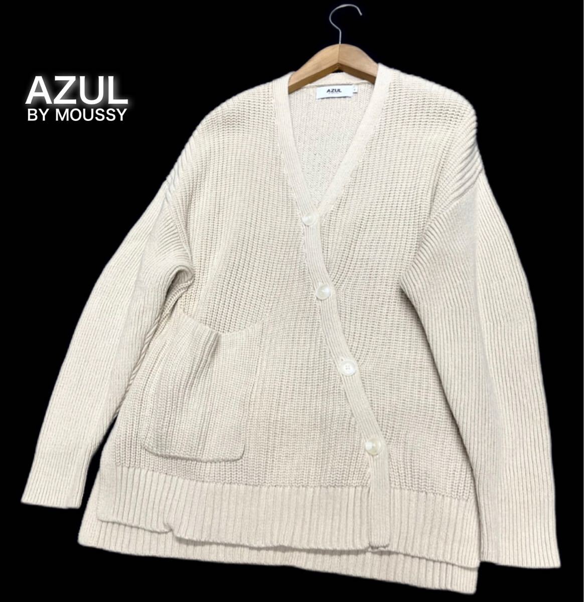 AZUL by moussy★アズールバイマウジー(Free)250GST70-122B ASYMMETRY BUTTON CARDIGAN アシメボタン ニット カーディガン/淡ベージュ系