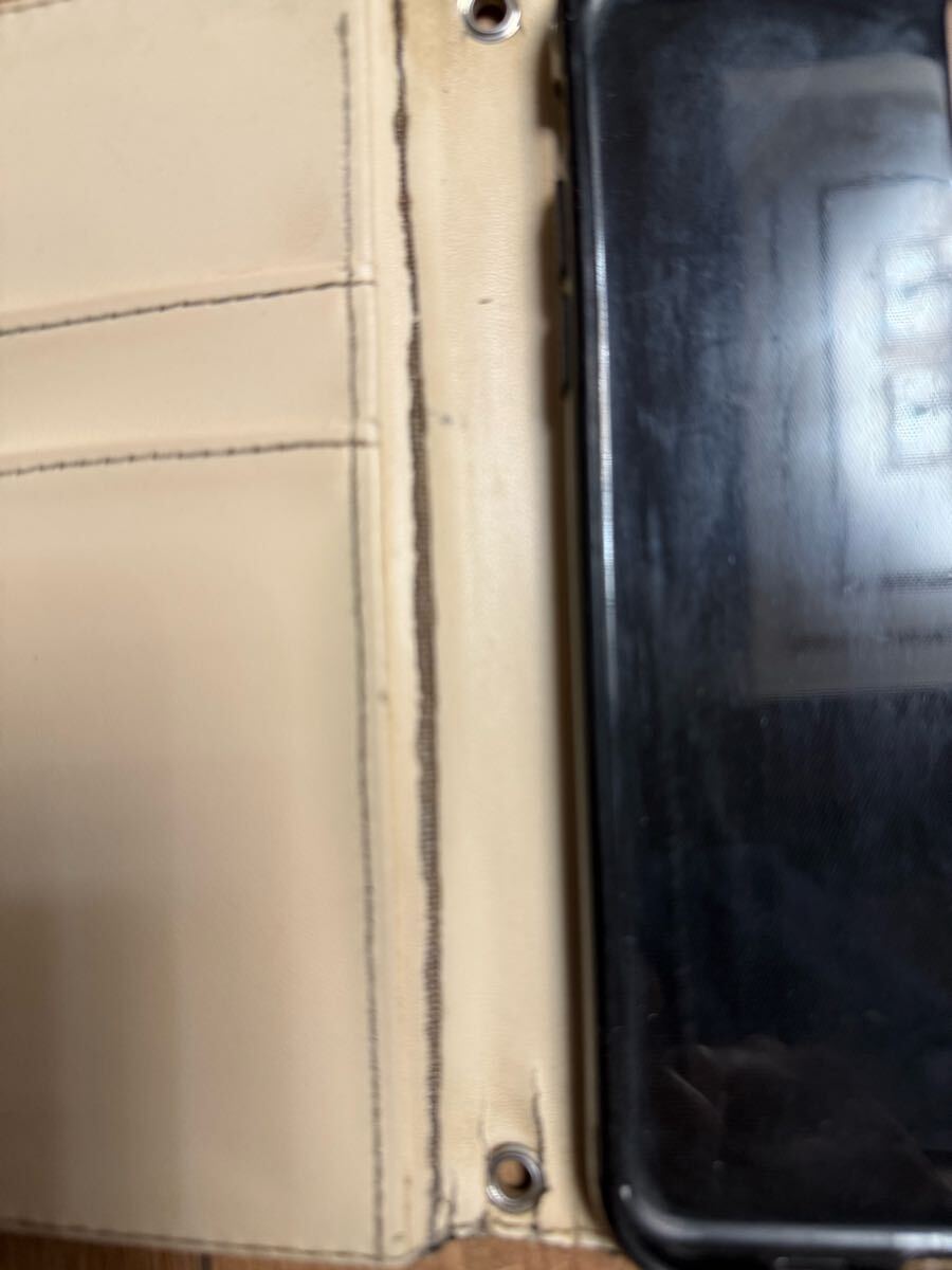 どうしても手帳型なので開け閉めの際の内側に縦筋に割れがありますが破れはありません。