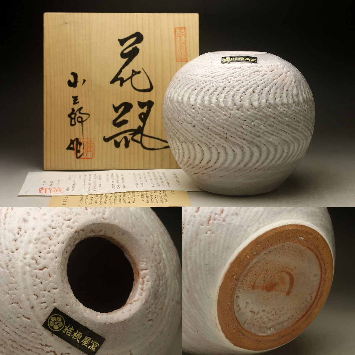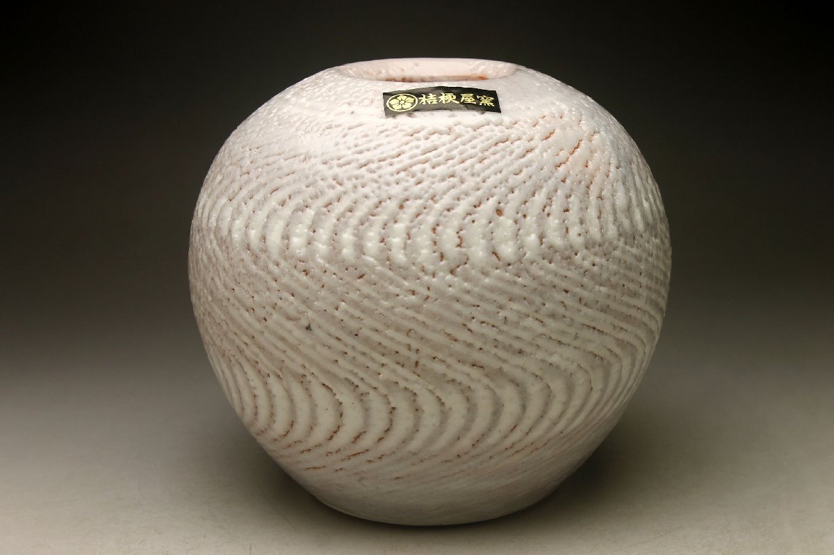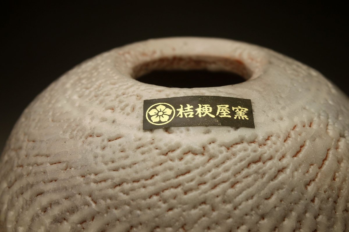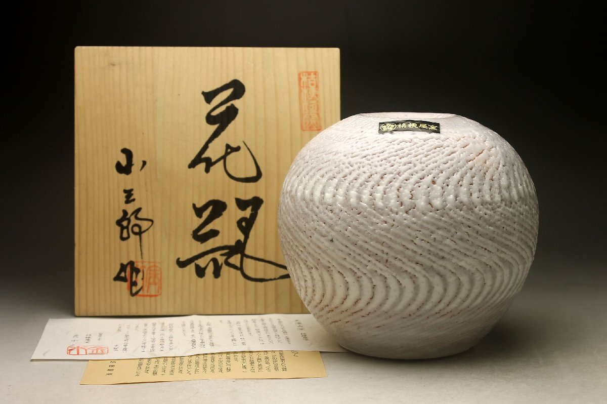 【余韻】 美濃古窯 桔梗屋窯 五代目 小三郎(造) 花瓶★華道具 共箱 無傷美品<同梱可>