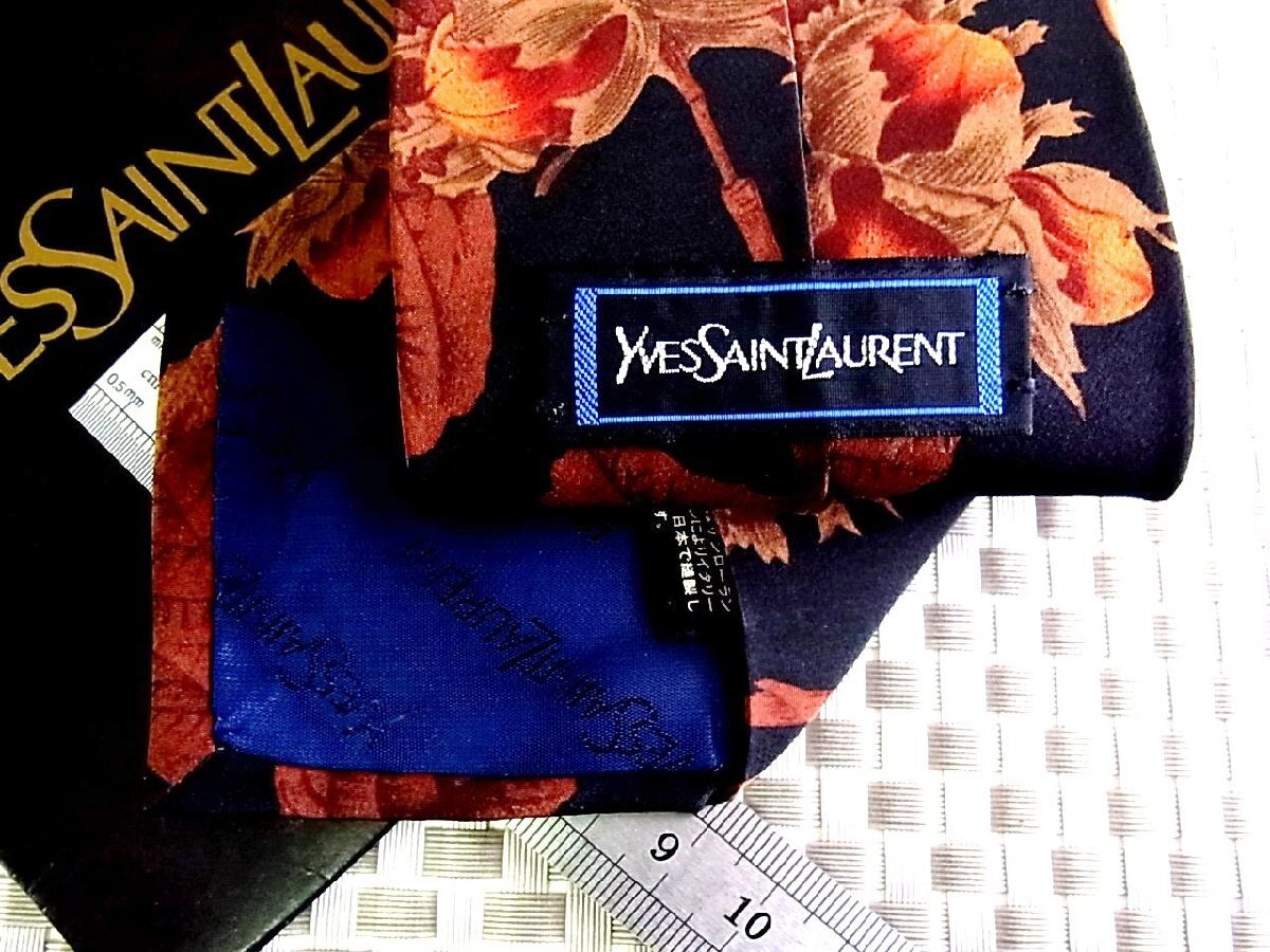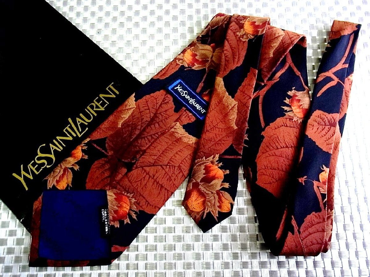 ★RB3797★【蕾 葉っぱ 植物 柄】サンローラン【美品】ネクタイ