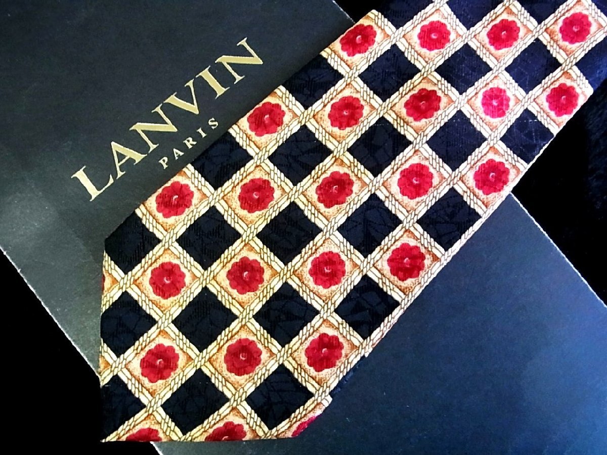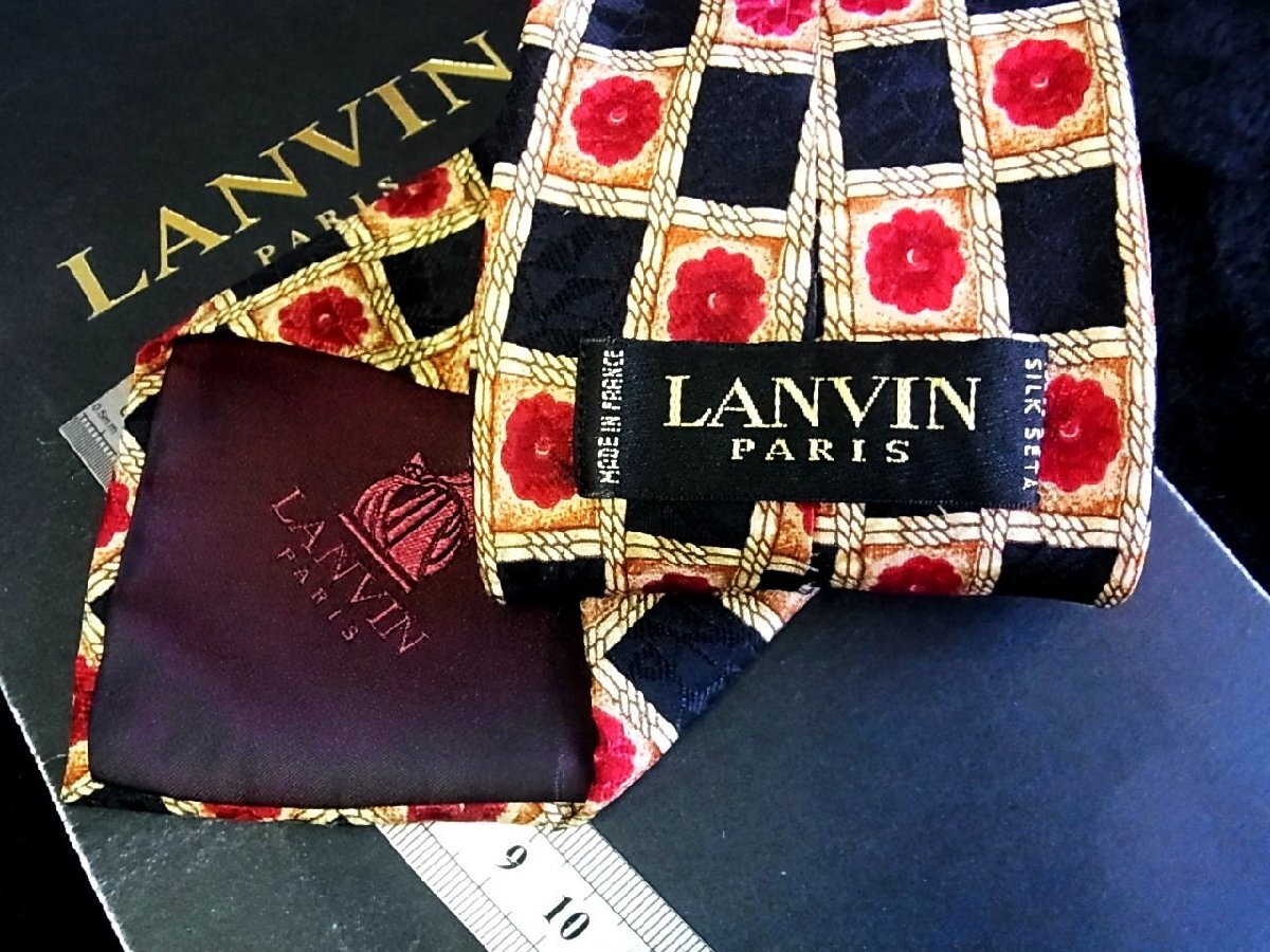 ★今週の特売★6223★高級ブランド【キャラ柄】★ランバン【花 植物 格子 柄】ネクタイ★