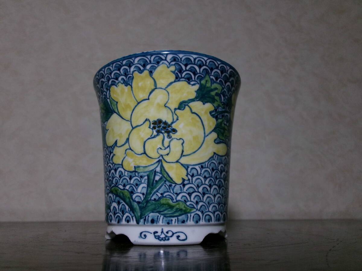 | 希少 コレクションにも 繊細な筆致 ゆうき祥石 花絵三足反縁丸懸崖小鉢 幅8.7センチ 長期保管品 | |||||||||||
