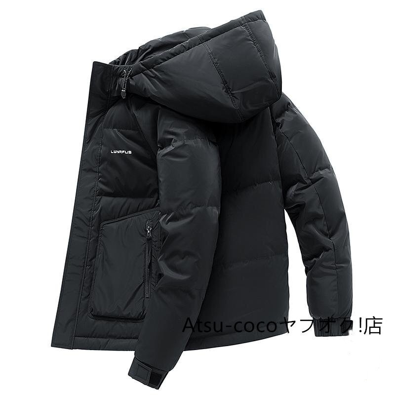 3XL ブラック ダウンジャケット ダウンコート メンズ おしゃれ 大きい 白き ワンポイント 軽量 防寒