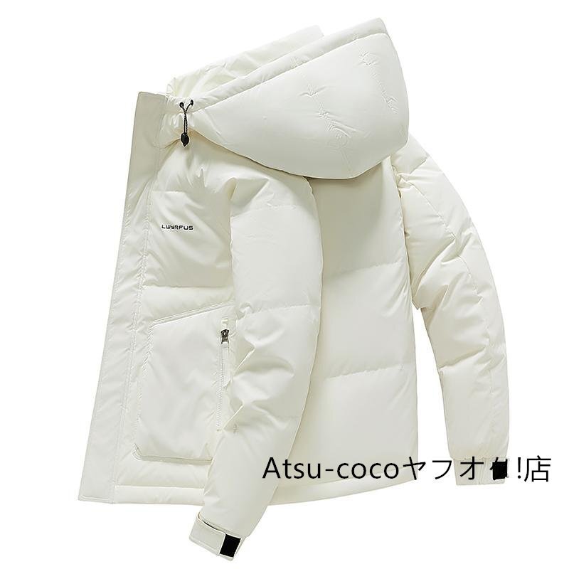 ダウンコート ダウンジャケット メンズ 大きい 白 おしゃれ ワンポイント フード付き 防風 軽量 90%ダウン 暖かい 防寒 ビジネス カジュアル アウトドア 冬 冬服