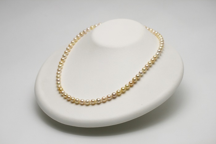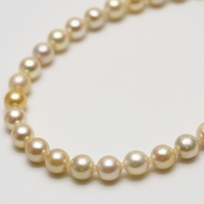 希少なベビーサイズのアコヤ真珠を使用したネックレスです。 年々貴重になってきたベビーパール。作っている真珠業者も少なくなってきました。 華やかなマルチカラーのお色目が出ています。 ベビーパールネックレスは通常のネックレスに比べて小さい分, 珠数が多く使用されています。そのため輝きが大変素晴らしいです。 胸元でさりげなく美しく彩ります。 クリッカーペンダントなどのチェーン代わりにしても豪華です。 | |