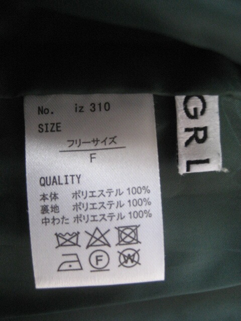美品GRLグレイルのダウン風中綿入りハイネックのジャケットF