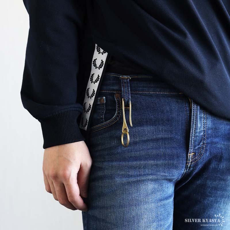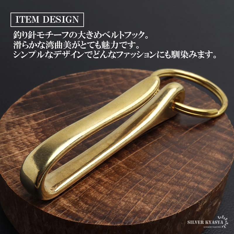 釣り針モチーフの大きめベルトフック。滑らかな湾曲美がとても魅力です。シンプルなデザインでどんなファッションにも馴染みます。