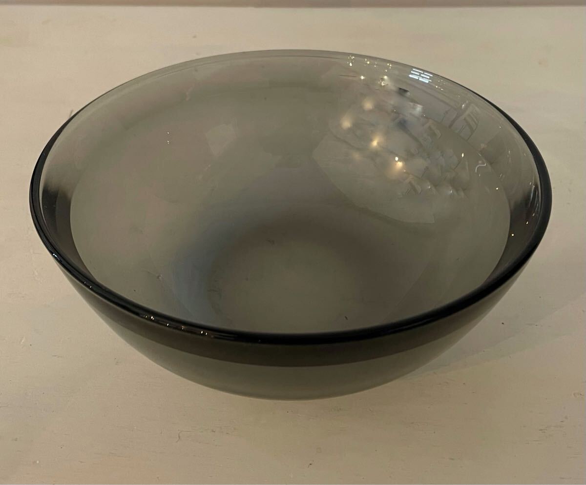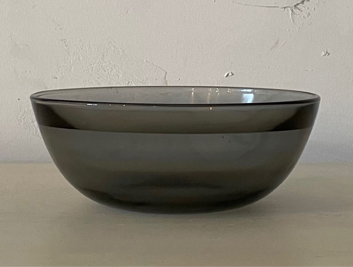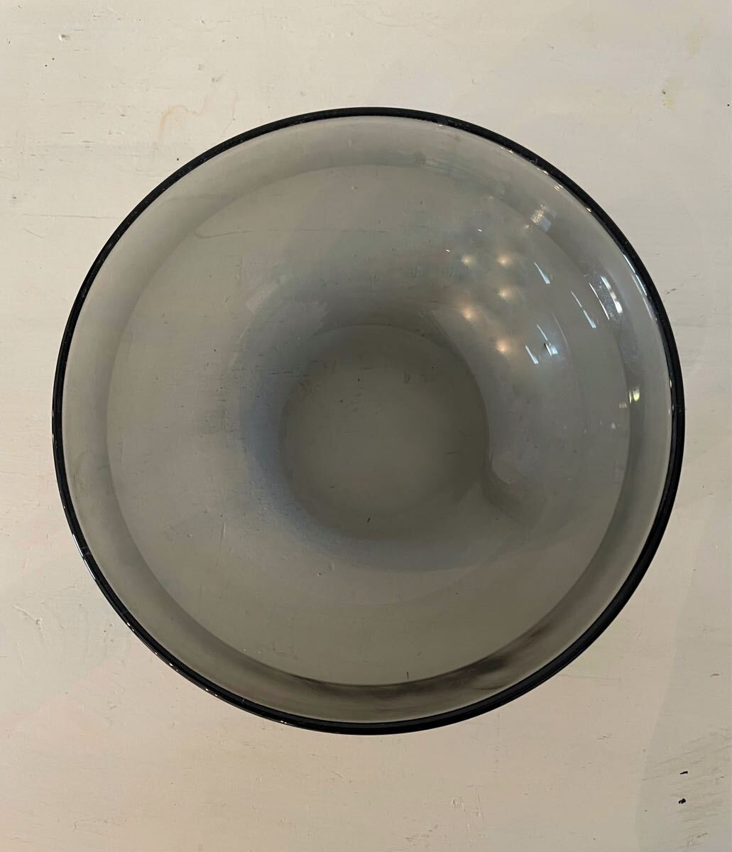 透明グレーのスモーキーなガラスボウルになります。 雰囲気のある品です。サラダボウルなどの器、多肉植物 観葉植物などの鉢受け、ポプリの器など用途は色々あるかと思います。