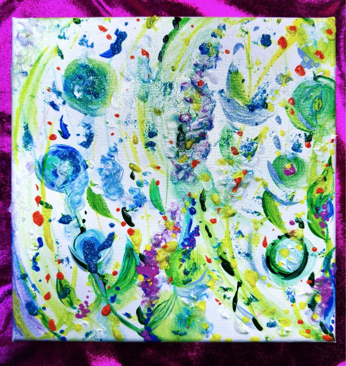 ・しっかりとした布地のキャンパスに、アクリル絵の具で、手描きしたアートパネルです。
