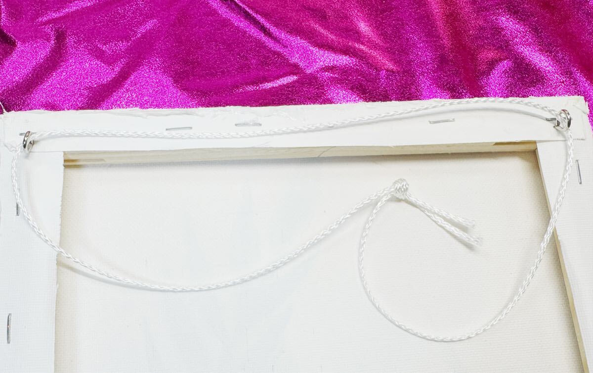 ・裏側から壁掛け用の、紐と金具が取り付けてあり、届いて直ぐに飾れます。