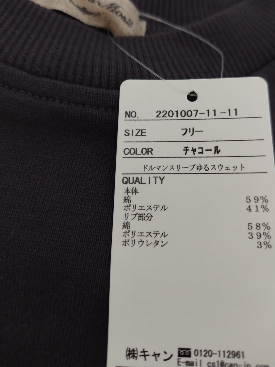 リブ部分 綿 58% ポリエステル 39% ポリウレタン 3%